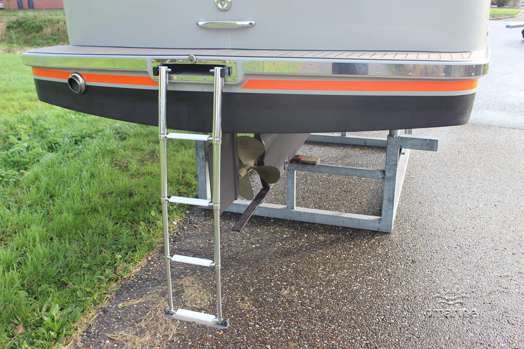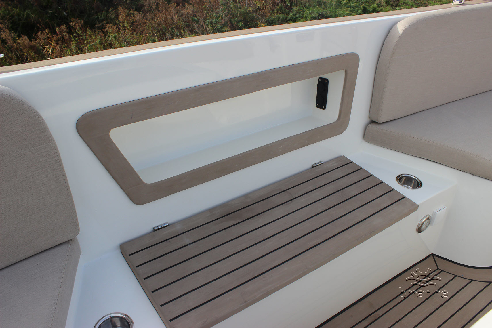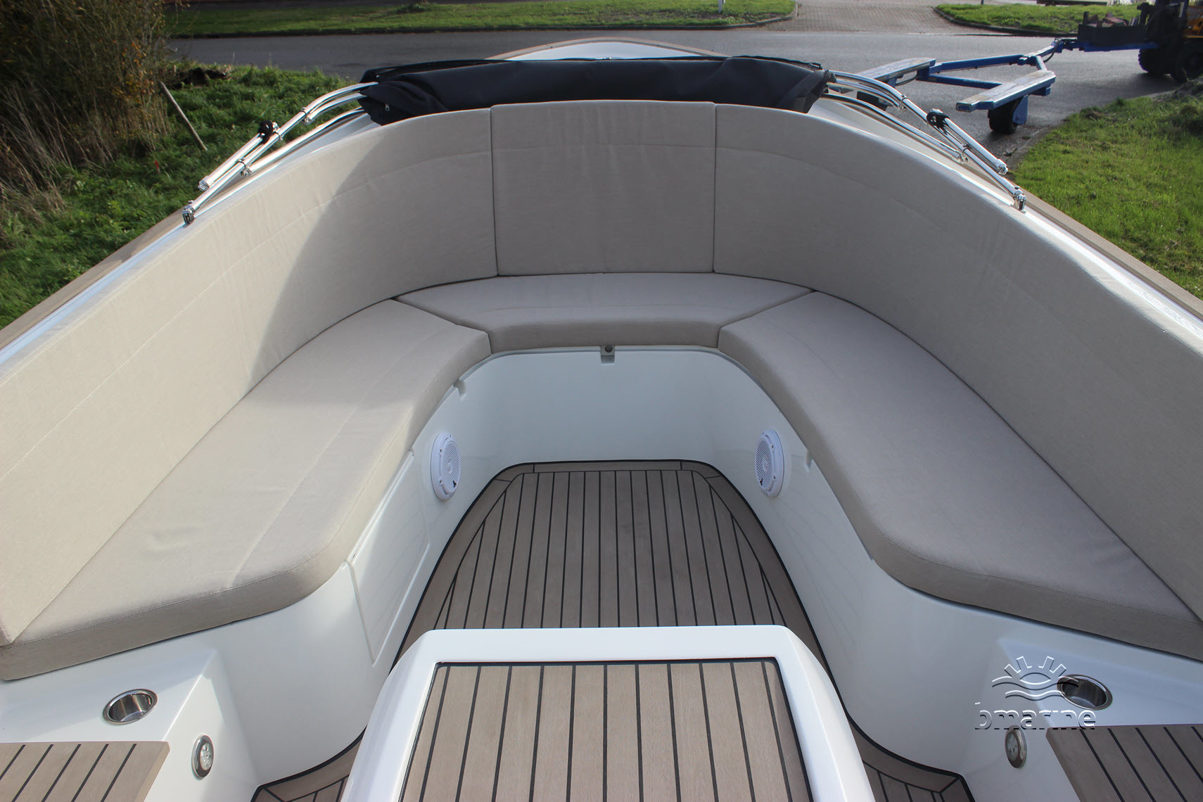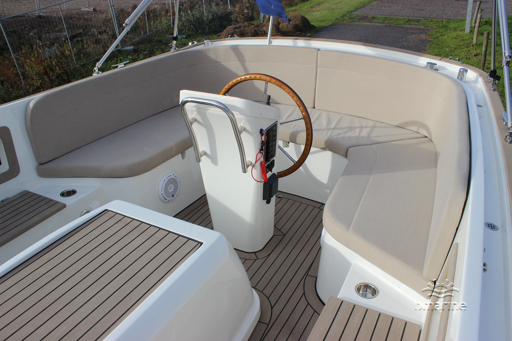 | Interieur | : | Kunst teak op de vloer, instap en motorkist, ruime rondzit voor en achter, zonnebed, chemische toilet, koellade, RVS bekerhouders en RVS handgreep op de stuurstand. |