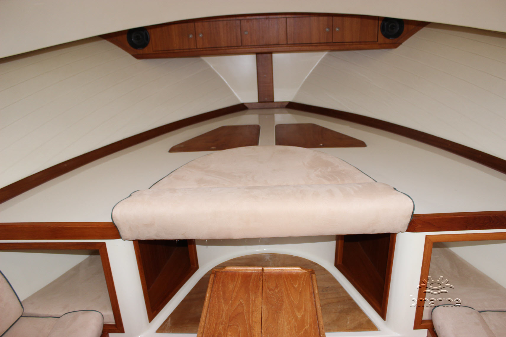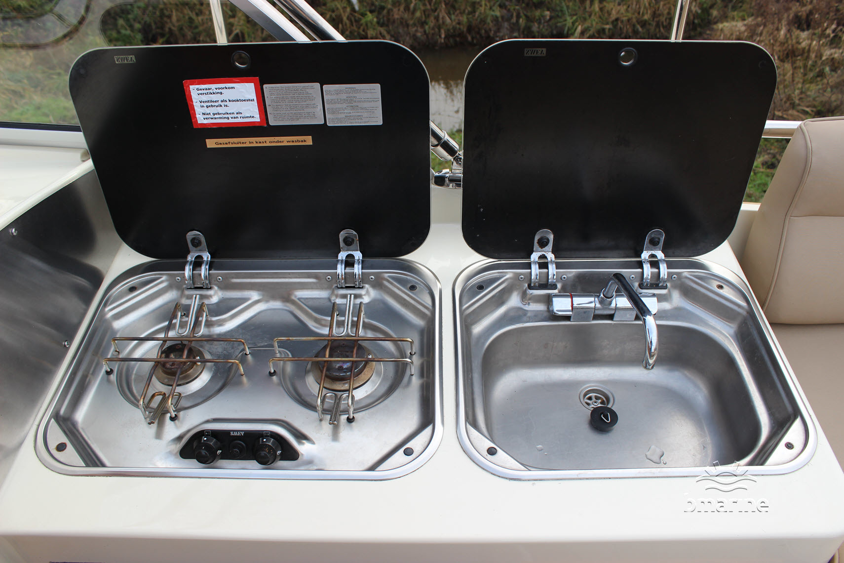 | Interieur | : | Ruime kuip met demontabele tafel. Keukenblok met stromendwater, 2 pits gas kookplaat, koelkast en koellade. Massief teak op de vloer. Ruime kajuit met 4 vaste slaapplekken en een afgesloten toilet ruimte. |