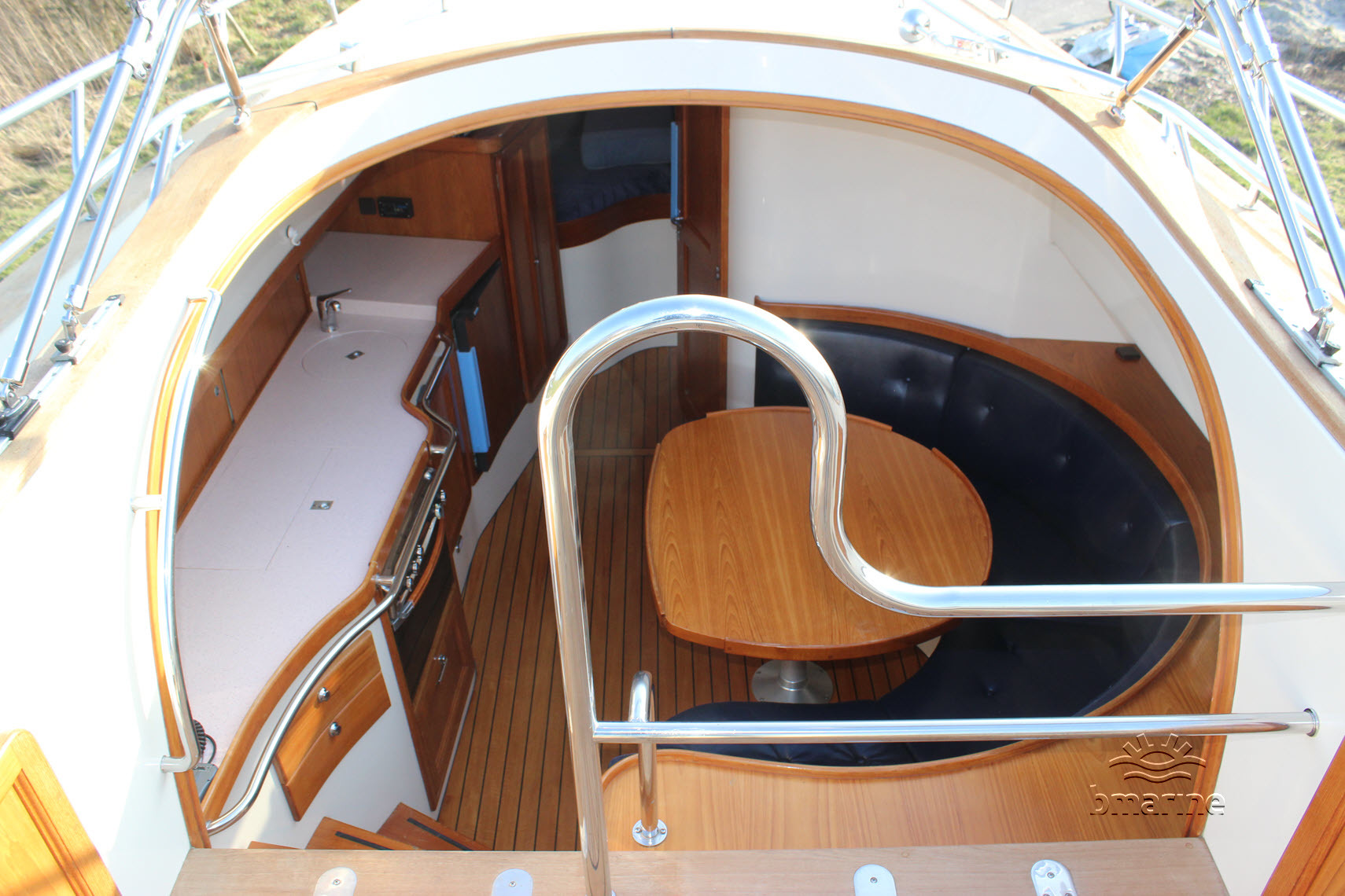 | Dek uitrusting | : | Buiskap met verhoogde achtertent, RVS reling voor en achter, elektrische ankerlier, hekdouche en zwemtrap aan de spiegel. |