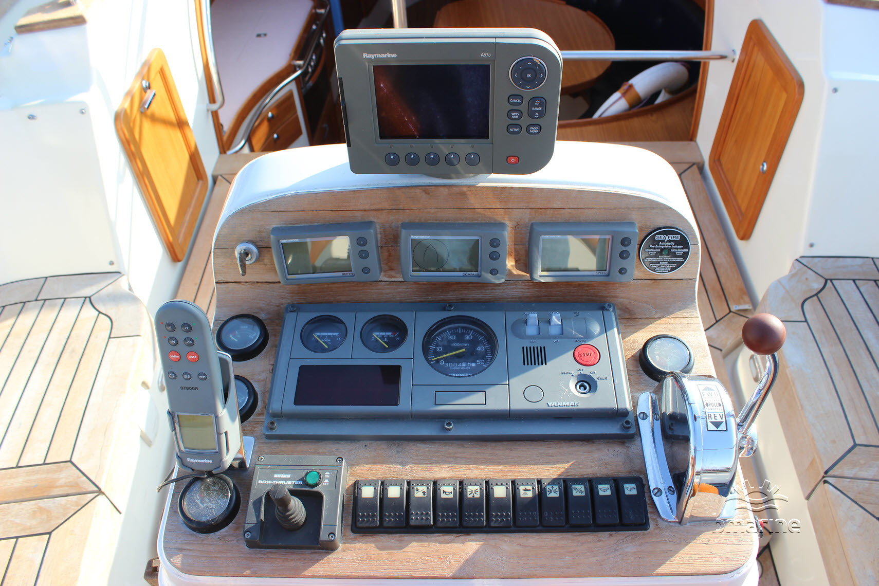| Navigatie | : | Raymarine kompas, marifoon, snelheid/diepeter meter, kaartplotter en stuurautomaat. Navigatieverlichting en roerstandaanwijzer |