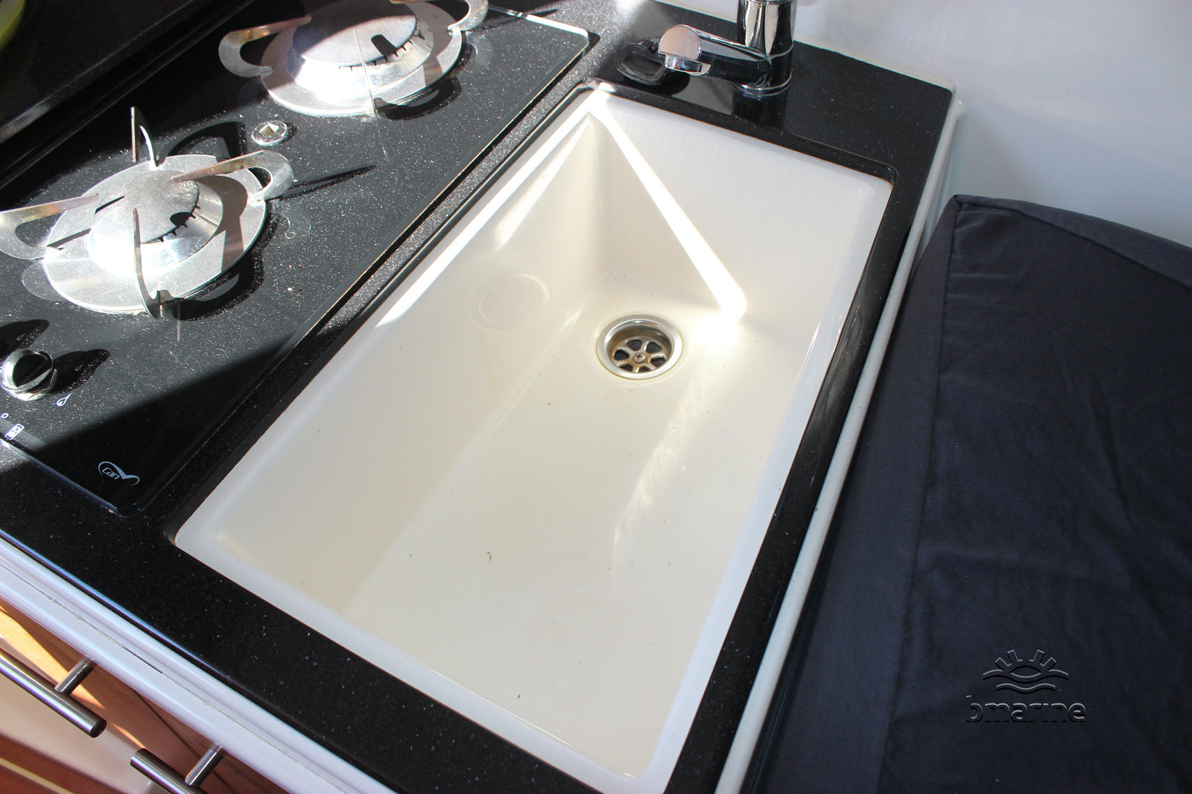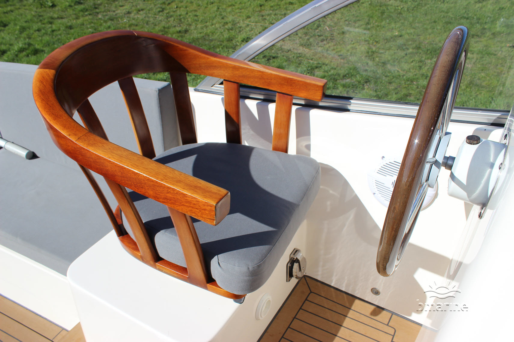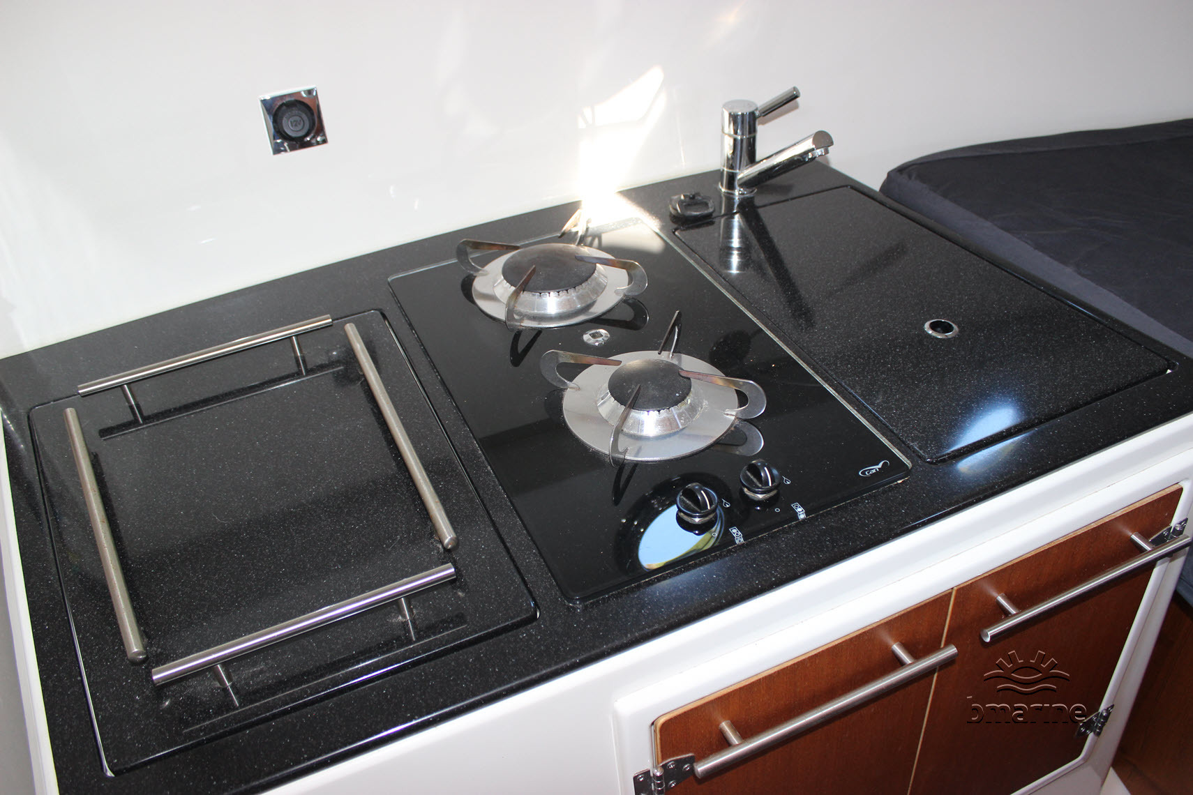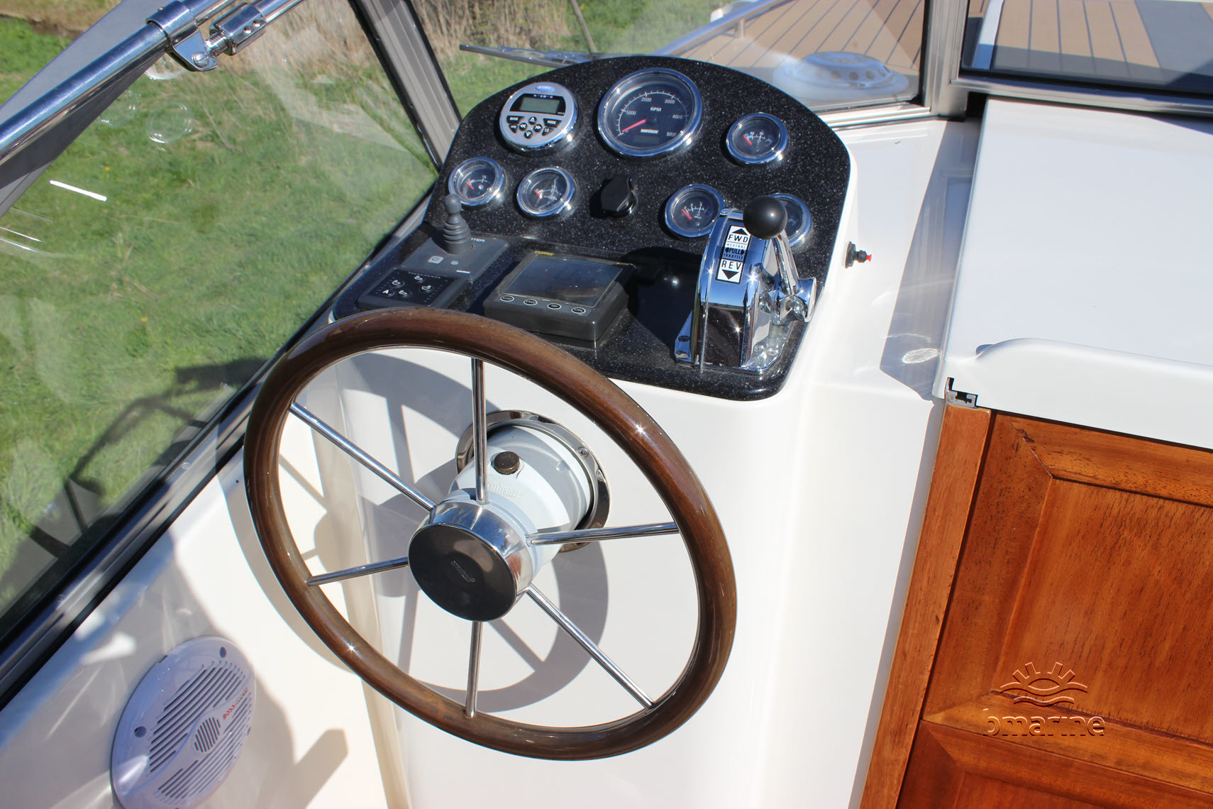 | Interieur | : | De ruime kuip is voorzien van een royale rondzit, met een Esthec-vloer en comfortabele stuur- en bijvaardersstoelen. De cabin beschikt over een vast bed voor 2 personen. Daarnaast is er een keukenblok aanwezig met stromend water, een tweepits gaskooktoestel en een koelkist. Verder is er een afgesloten toiletruimte met een elektrisch toilet en een handdouche. Zowel de kuip als de cabin kunnen worden verwarmd door middel van een Webasto heteluchtverwarming. |