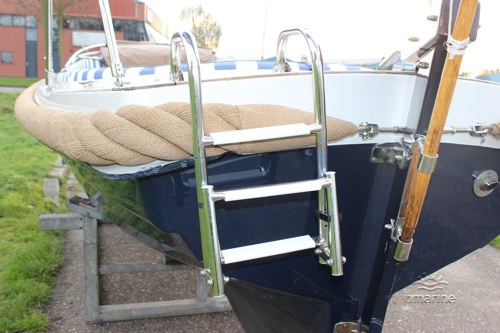 | Accommodatie | : | Ruime rondzit voor en achter, zonnebed, teak op de vloer, instap en motorkist. |