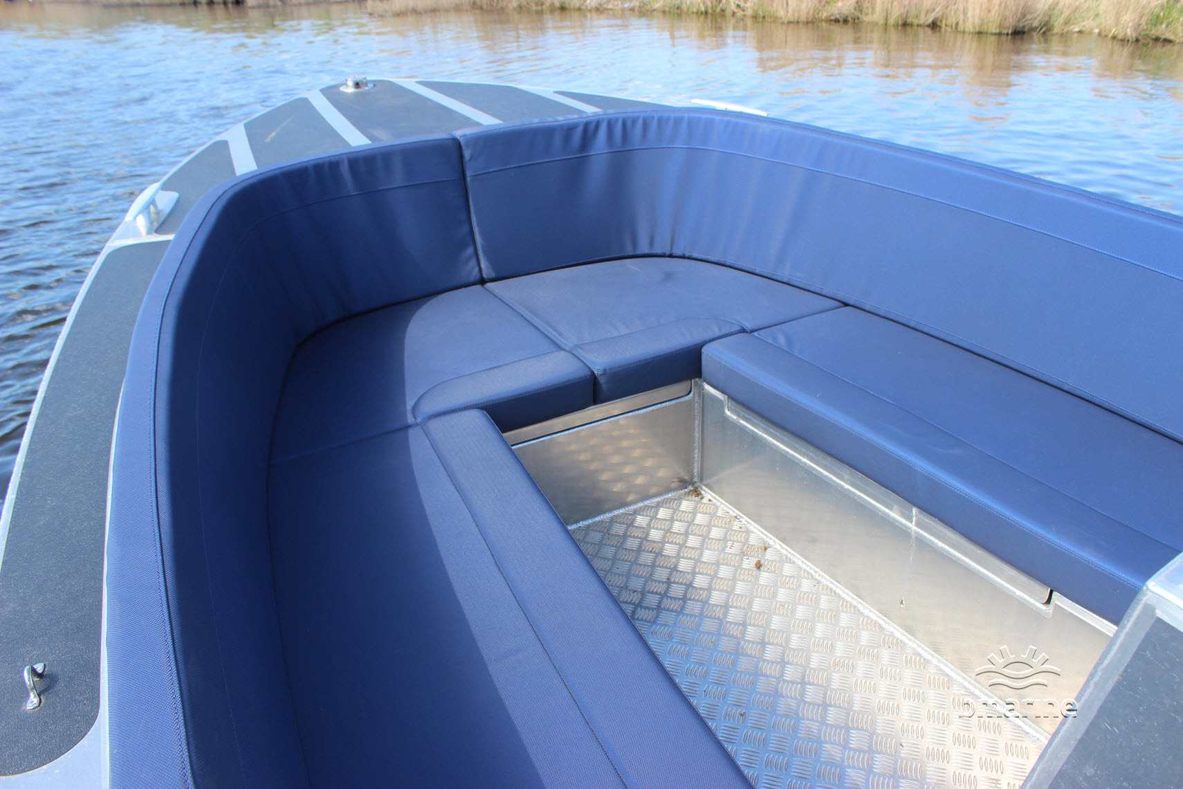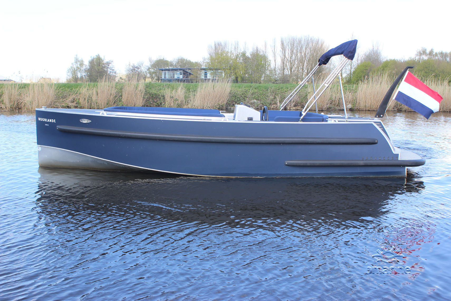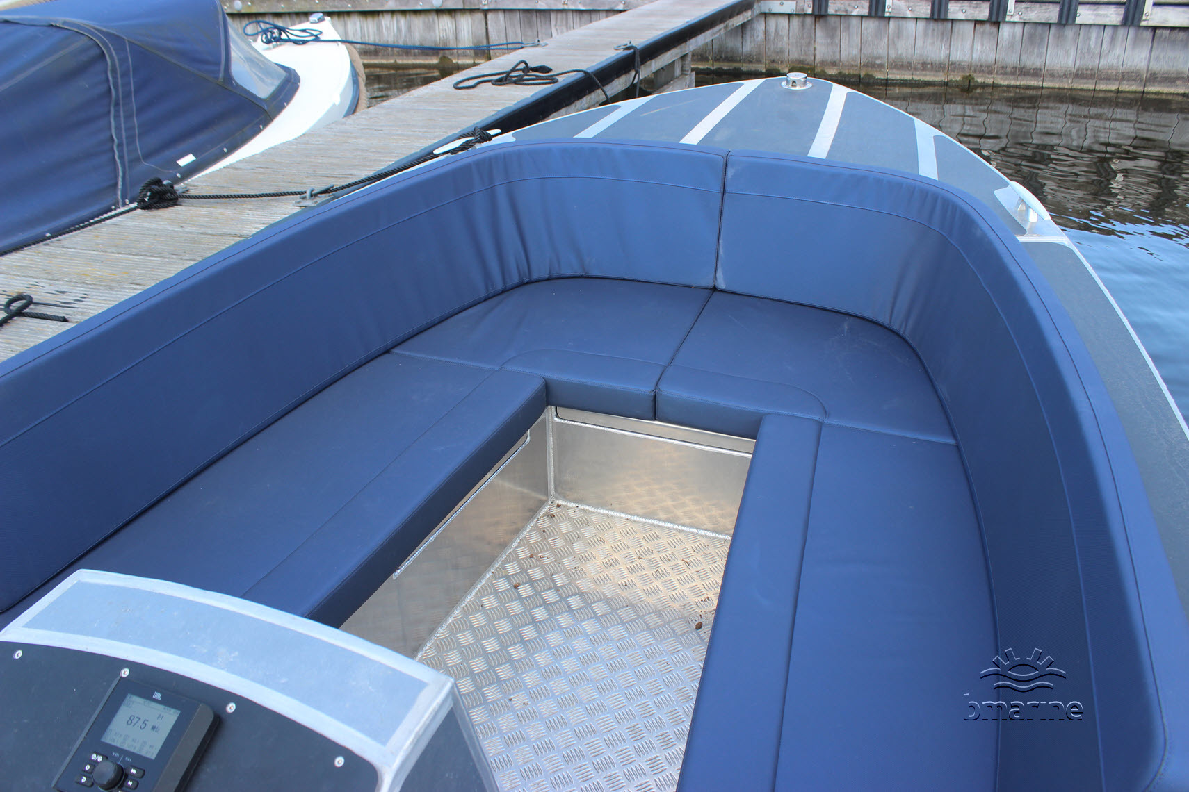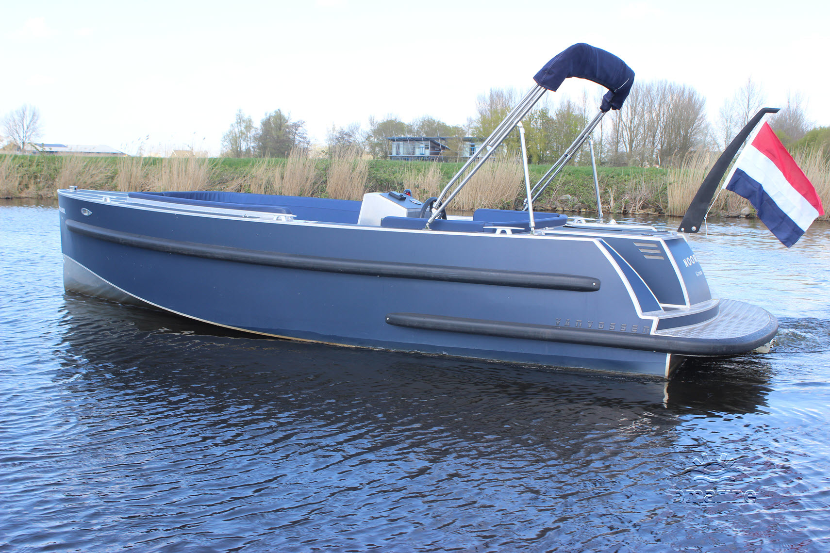 | Omschrijving | : | Onderhoudsarme Van Vossen Tender 600 in een gewrapte donkerblauwe kleur. Aangedreven door een Honda 20pk outboard. Voorzien van o.a. traanplaat vloer, ruime rondzit voor en achter, zonnebed, audiosysteem, instaphulp en zwemplateau met zwemtrap. |