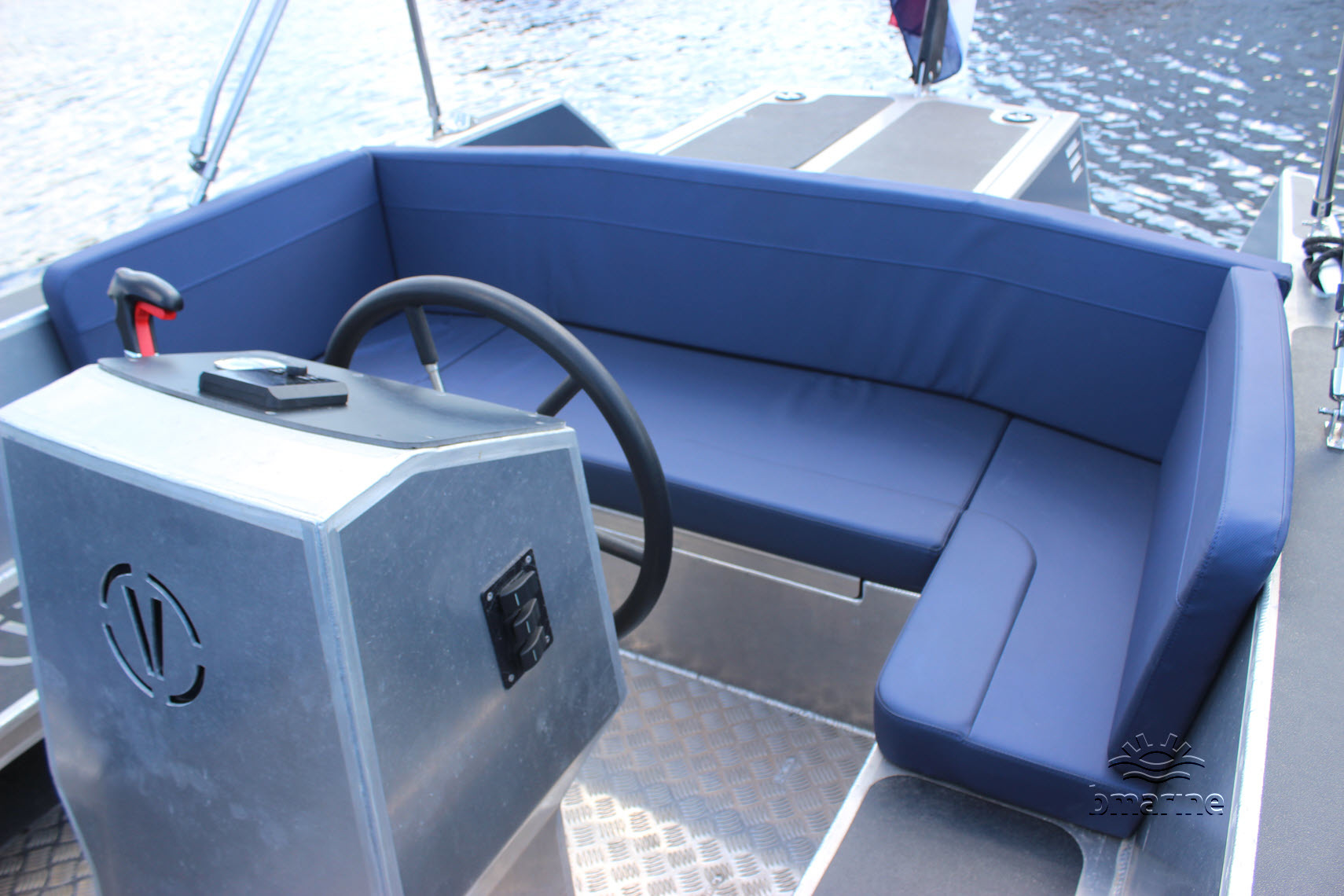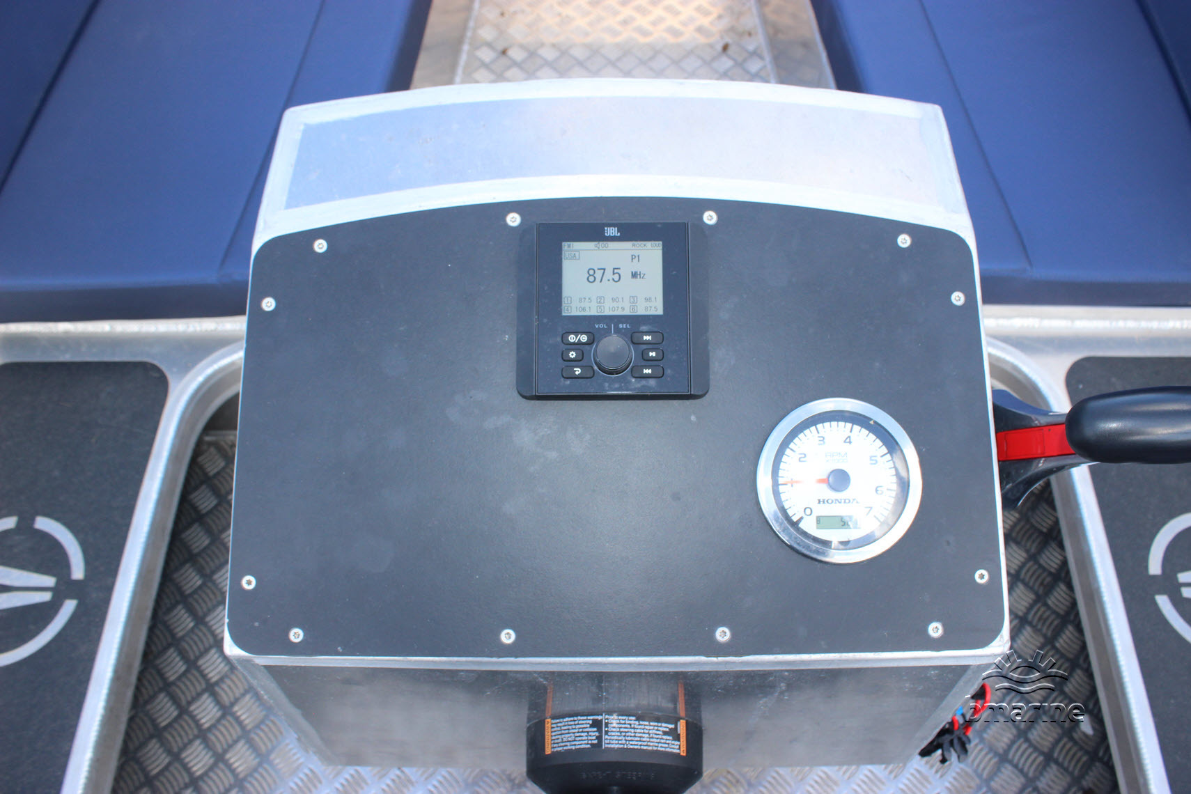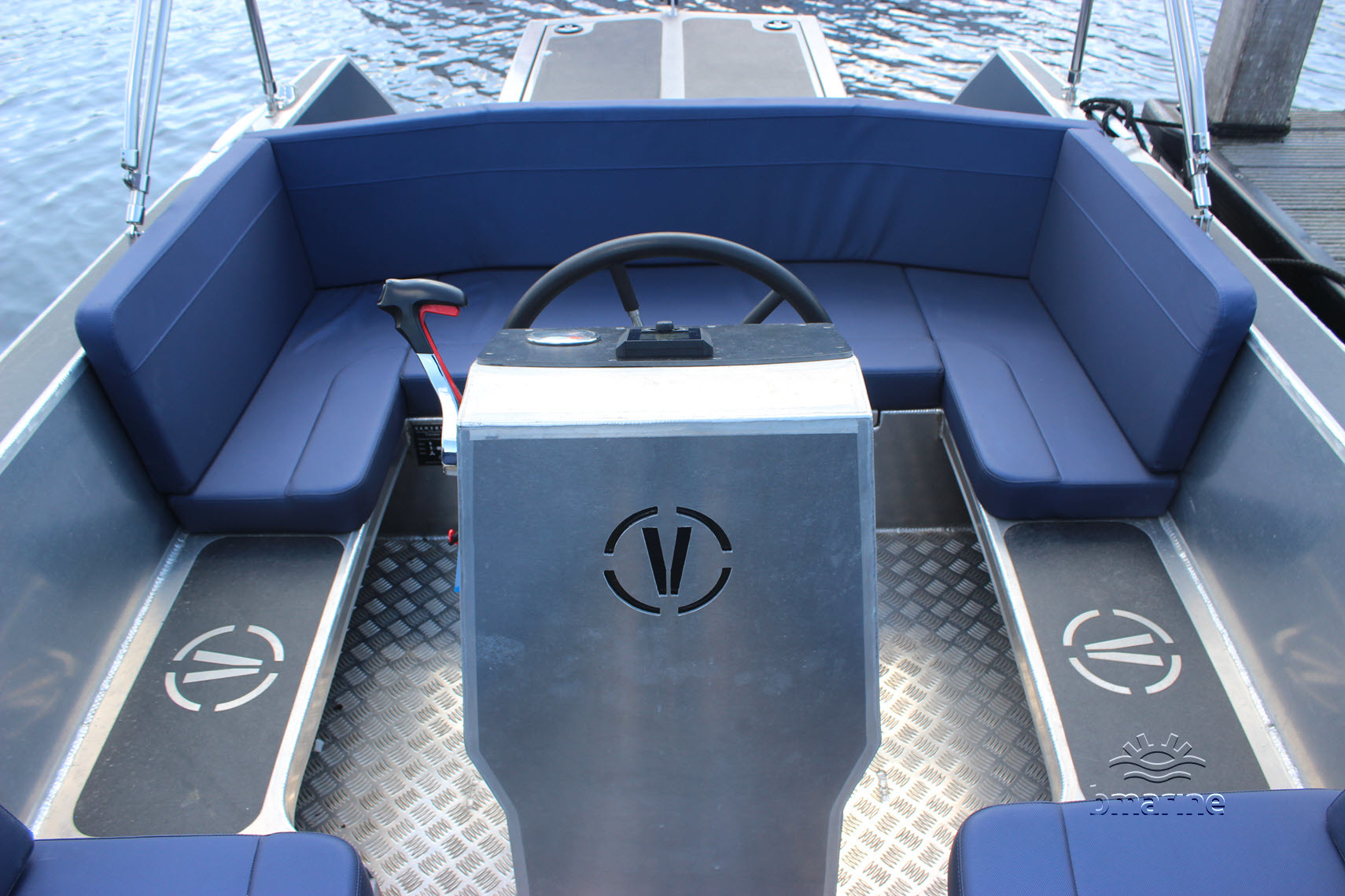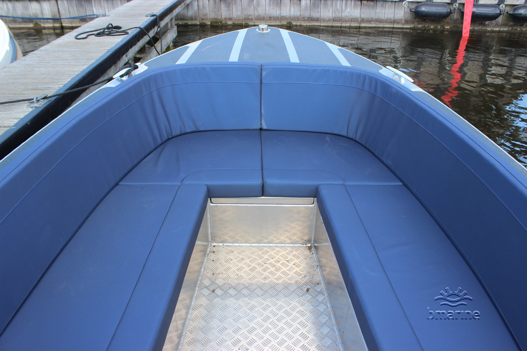 | Omschrijving | : | Onderhoudsarme Van Vossen Tender 600 in een gewrapte donkerblauwe kleur. Aangedreven door een Honda 20pk outboard. Voorzien van o.a. traanplaat vloer, ruime rondzit voor en achter, zonnebed, audiosysteem, instaphulp en zwemplateau met zwemtrap. |