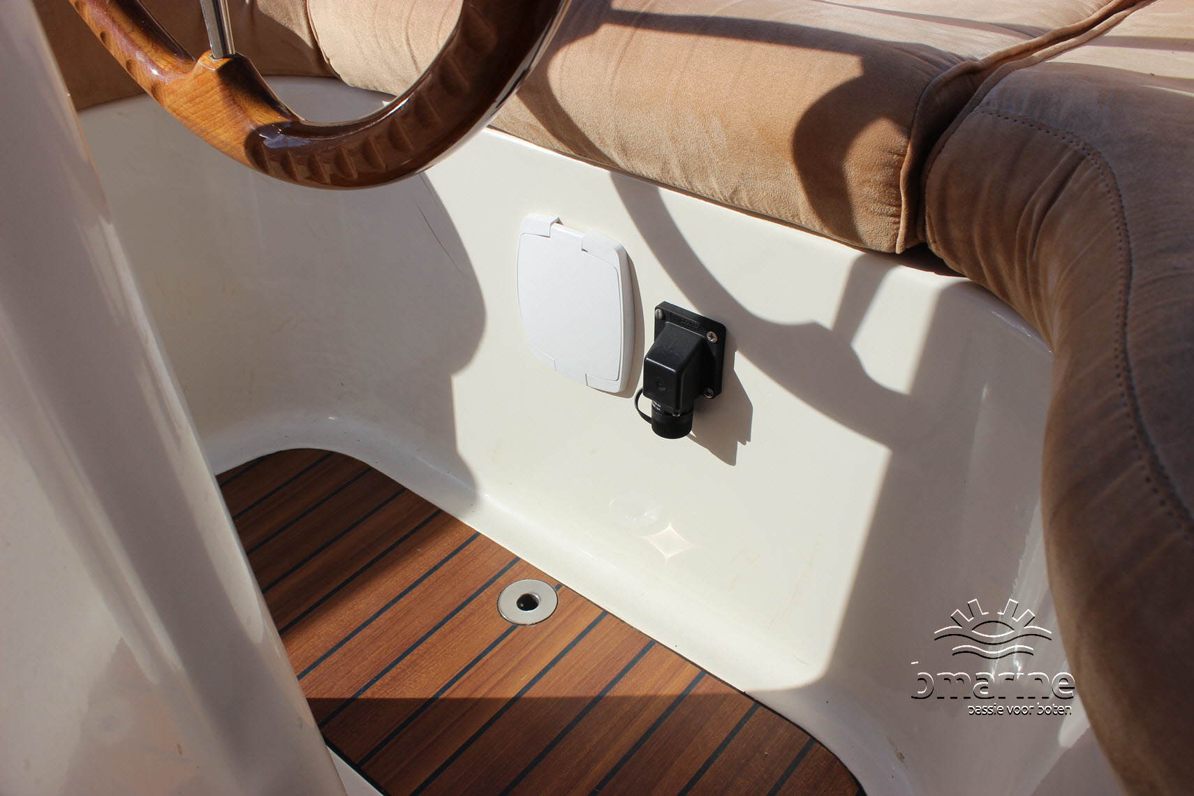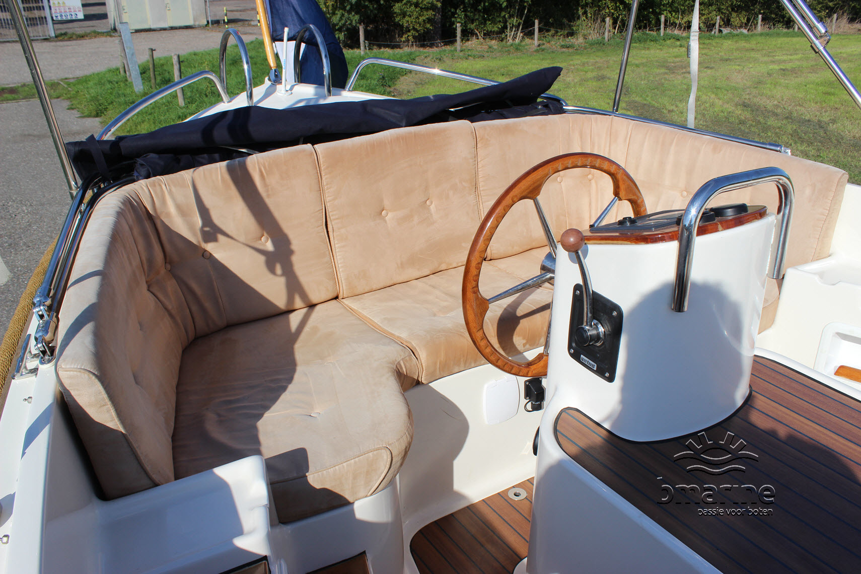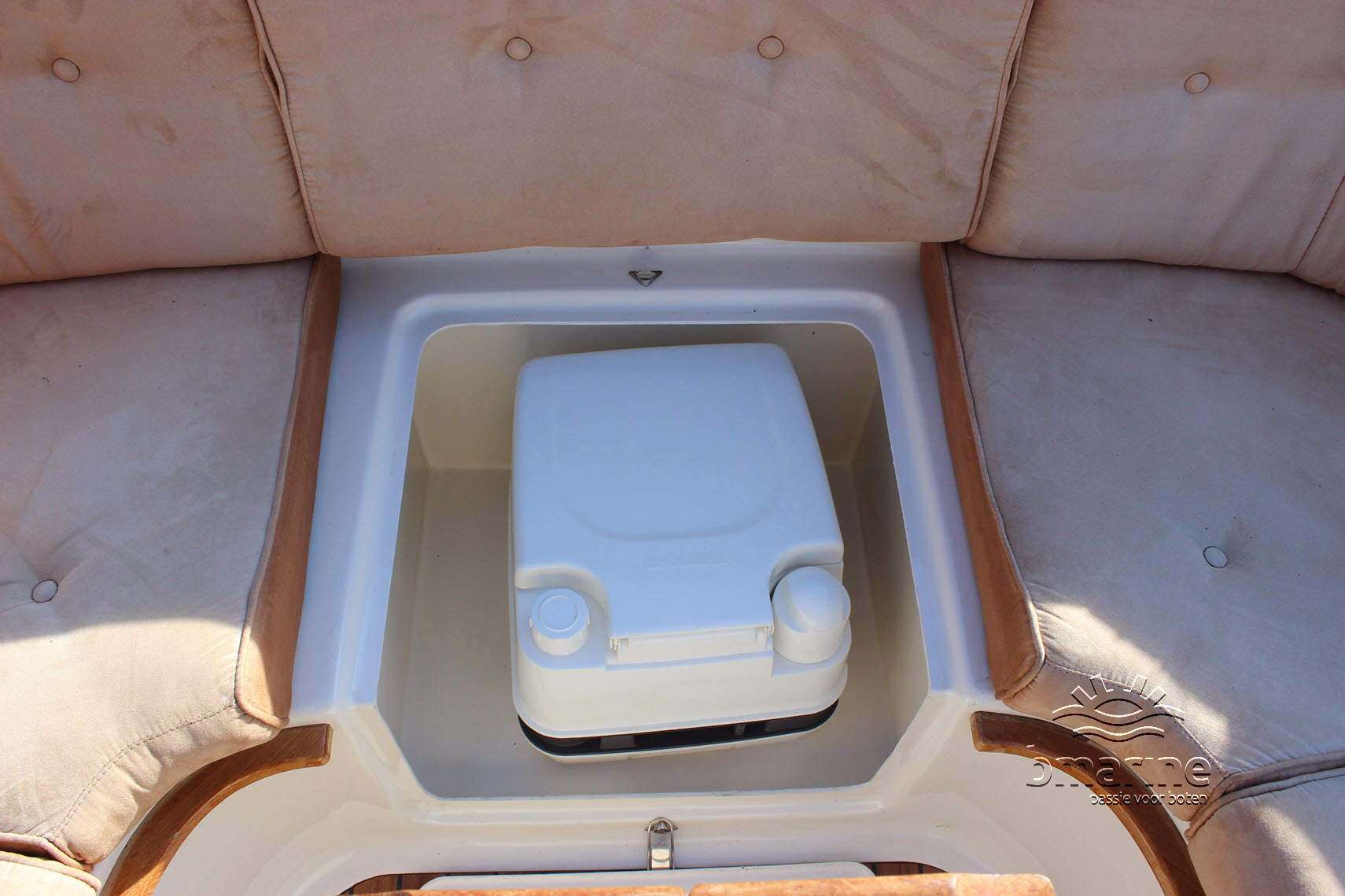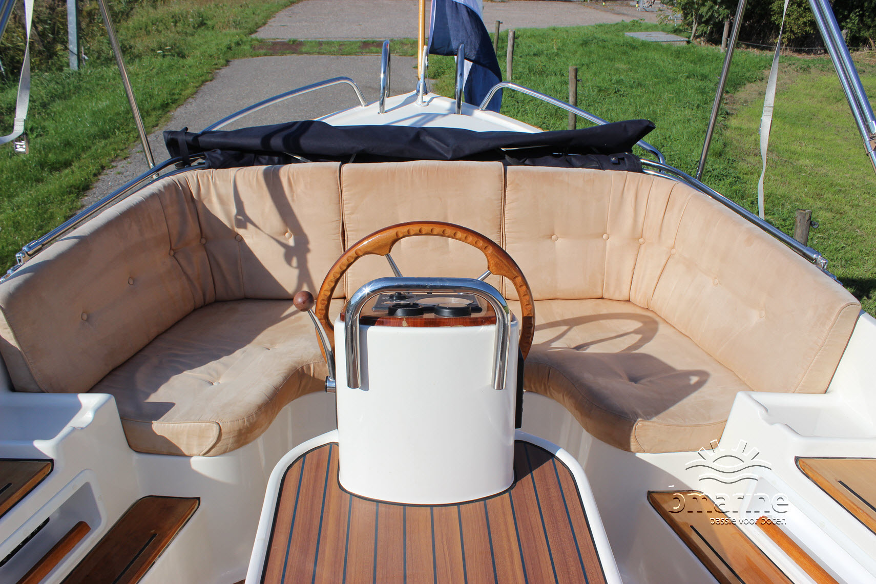 Interieur | : | Ruime rondzit zowel voor als achter, Teakline op de vloer en motorkist. Zonnebed, audiosysteem, koelkast en chemisch toilet. |