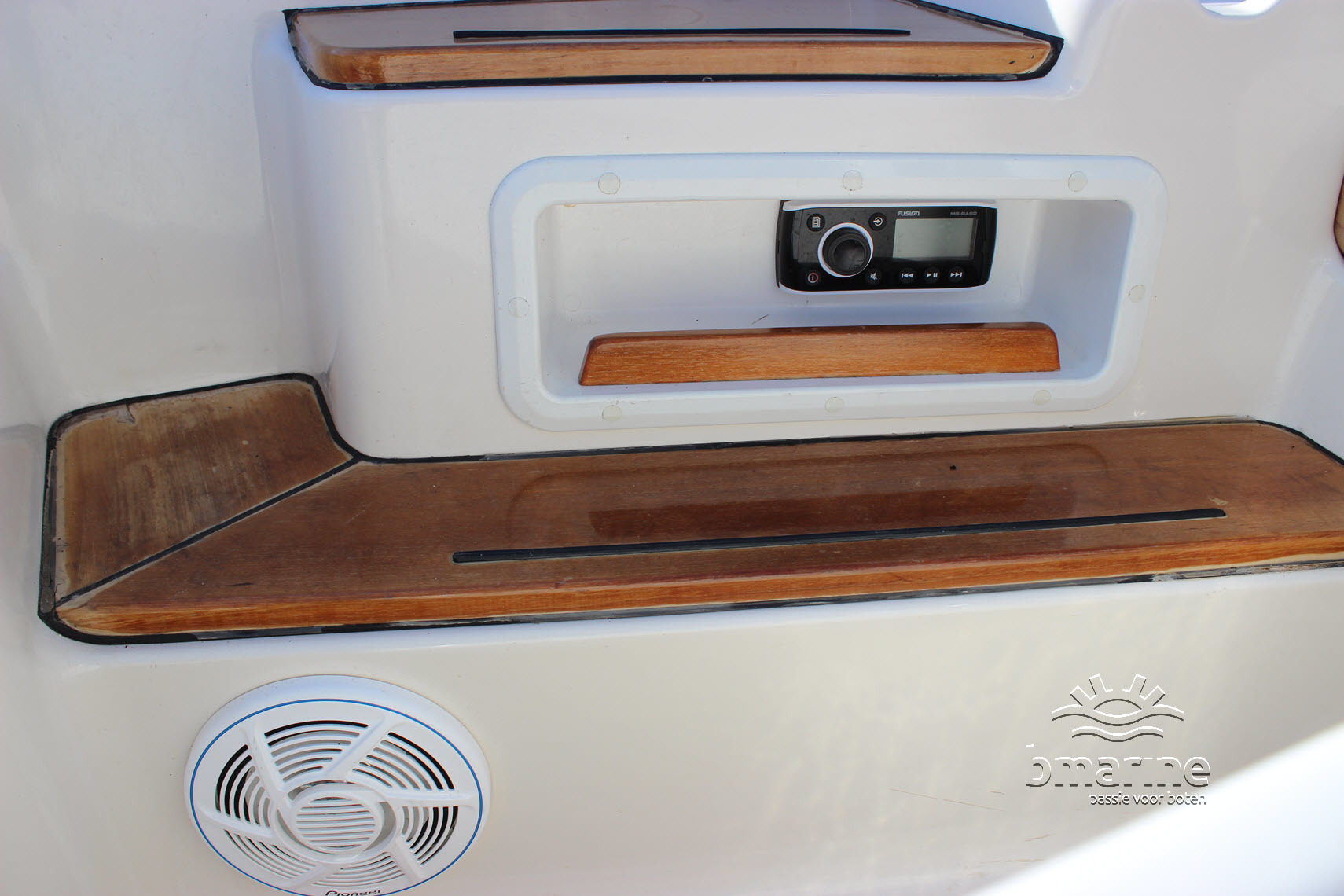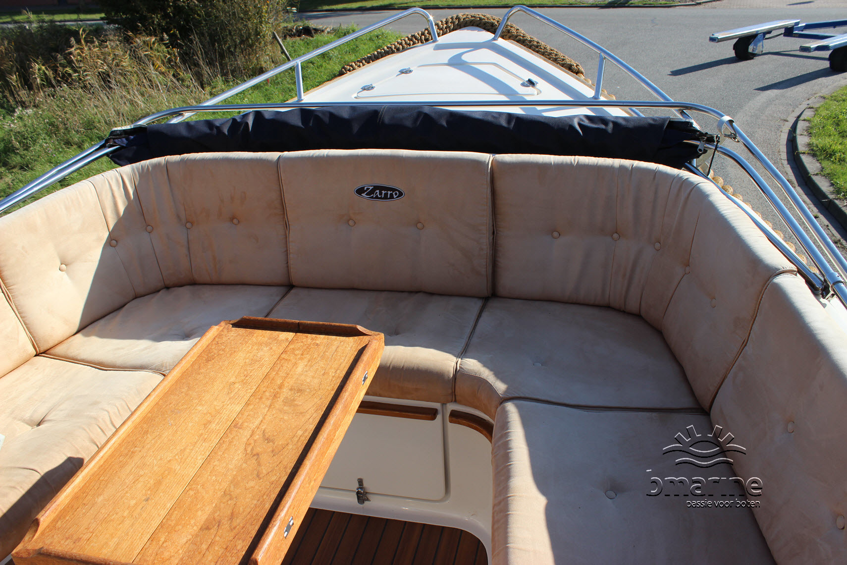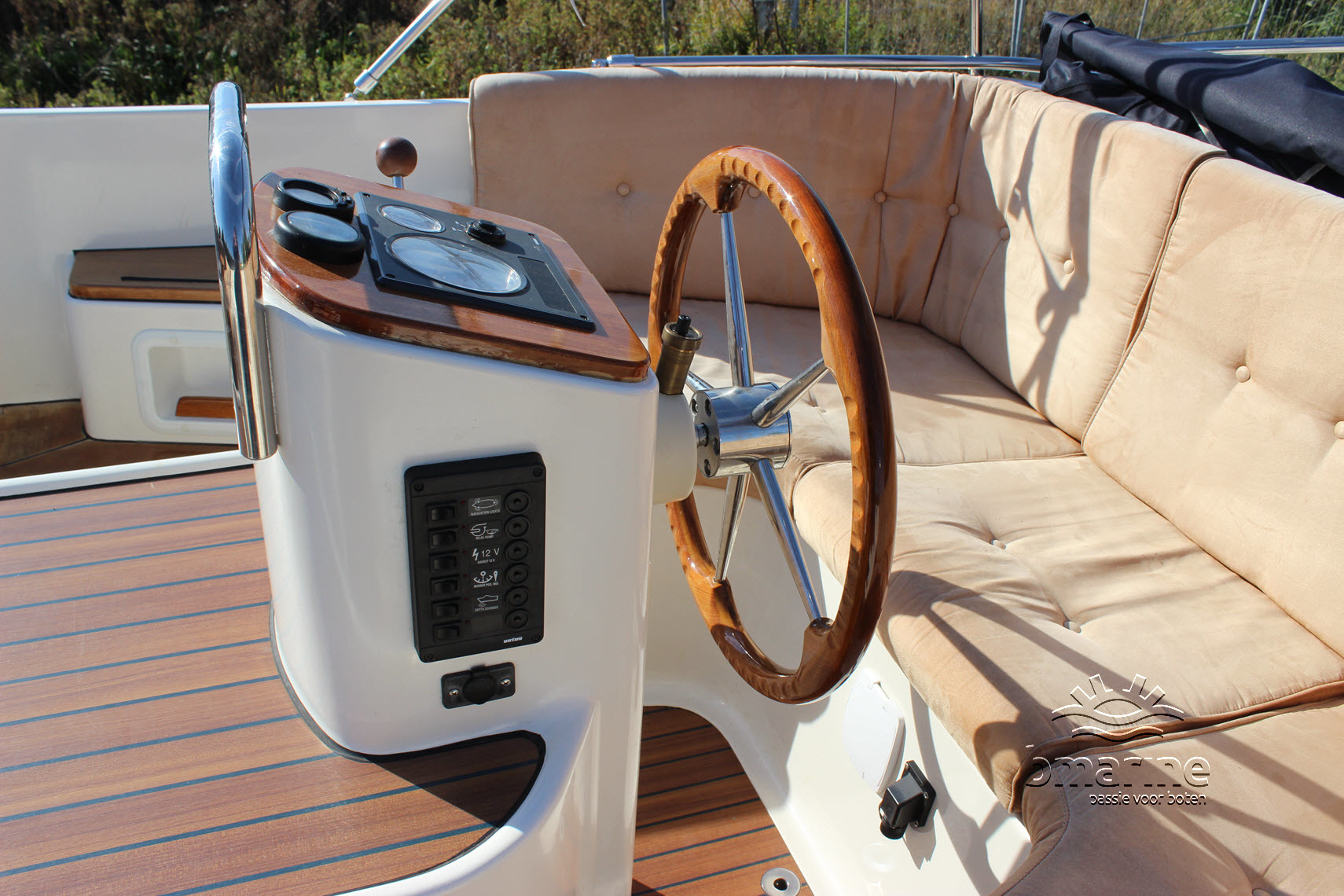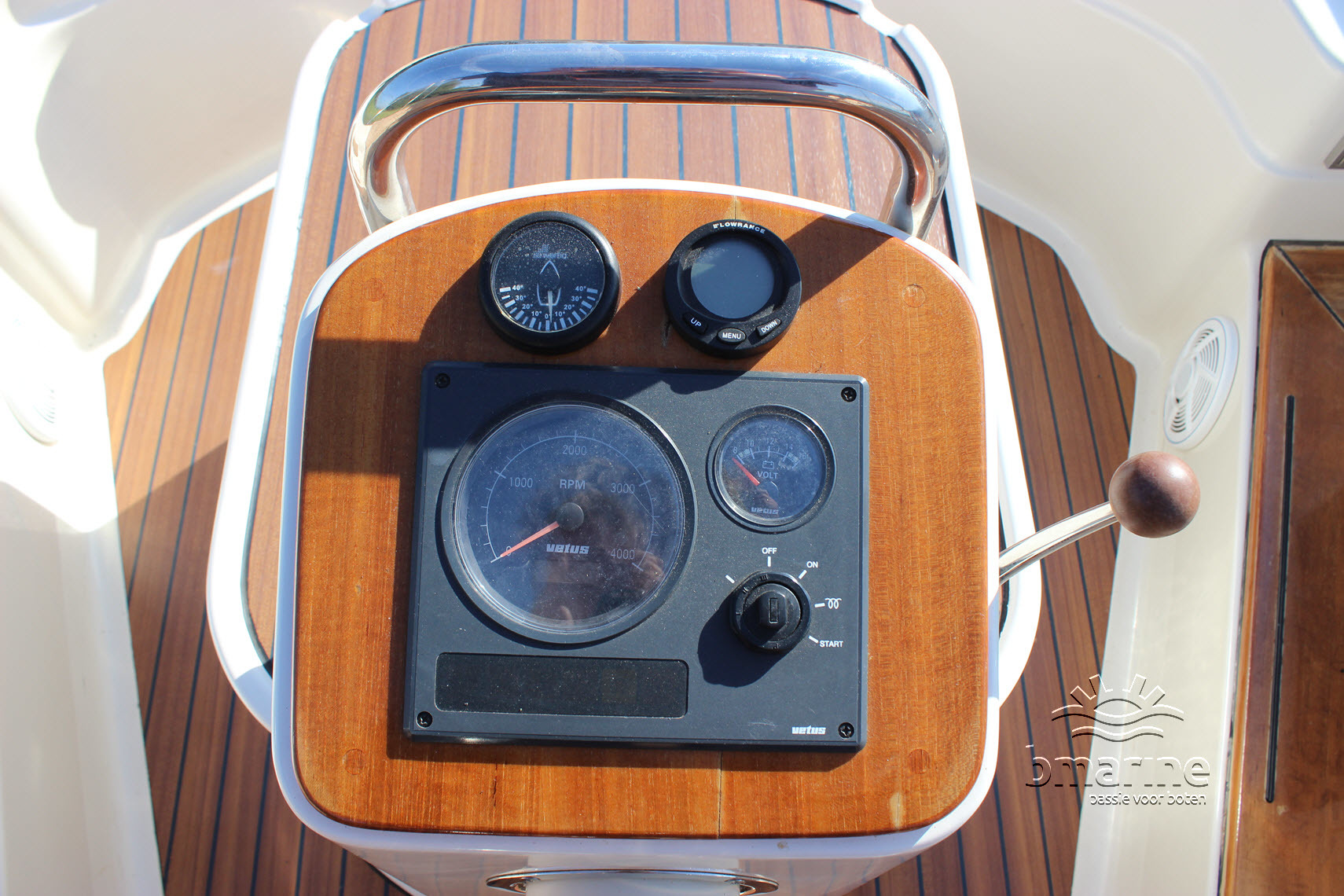 Interieur | : | Ruime rondzit zowel voor als achter, Teakline op de vloer en motorkist. Zonnebed, audiosysteem, koelkast en chemisch toilet. |