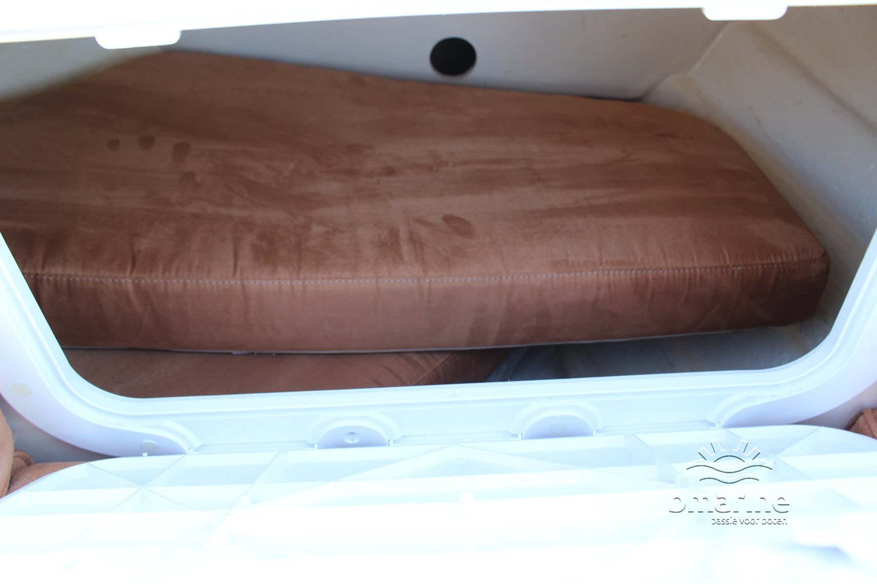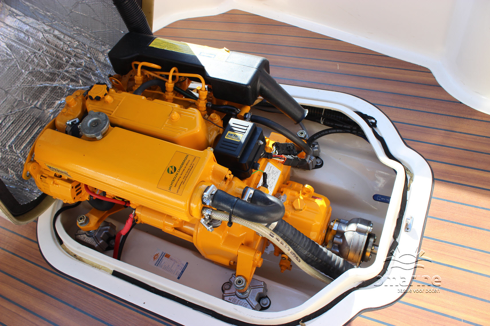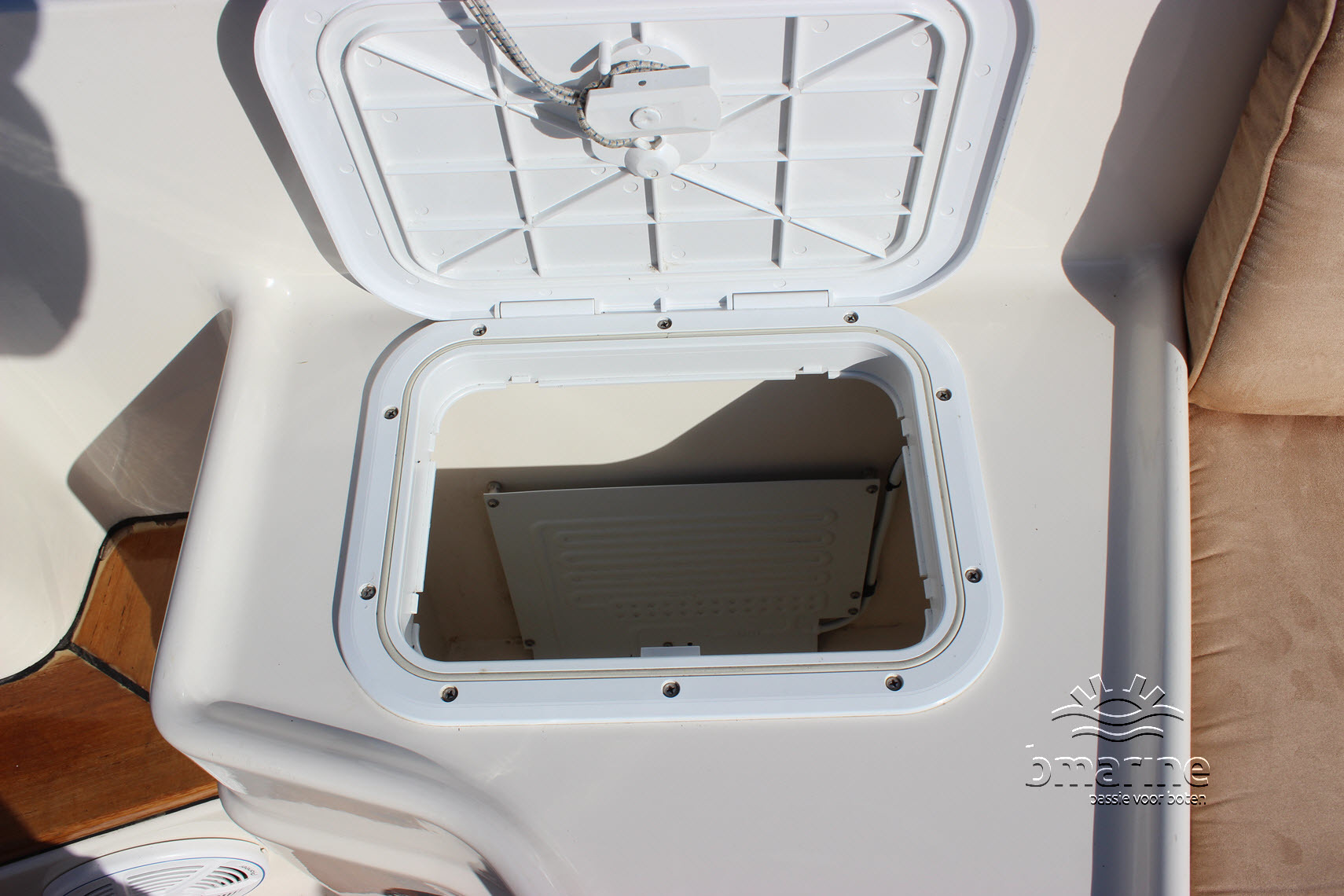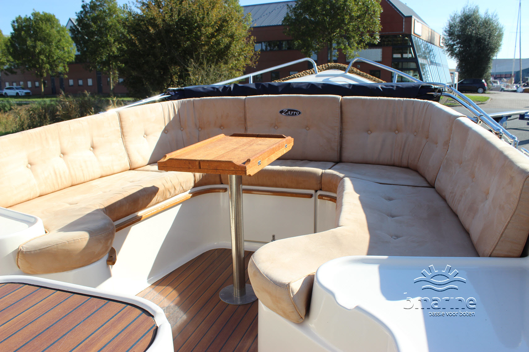 Interieur | : | Ruime rondzit zowel voor als achter, Teakline op de vloer en motorkist. Zonnebed, audiosysteem, koelkast en chemisch toilet. |