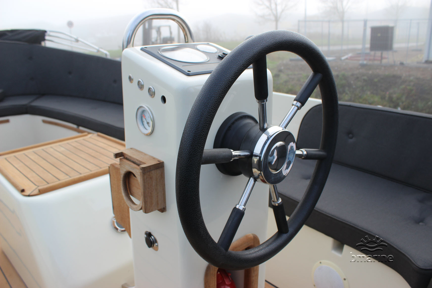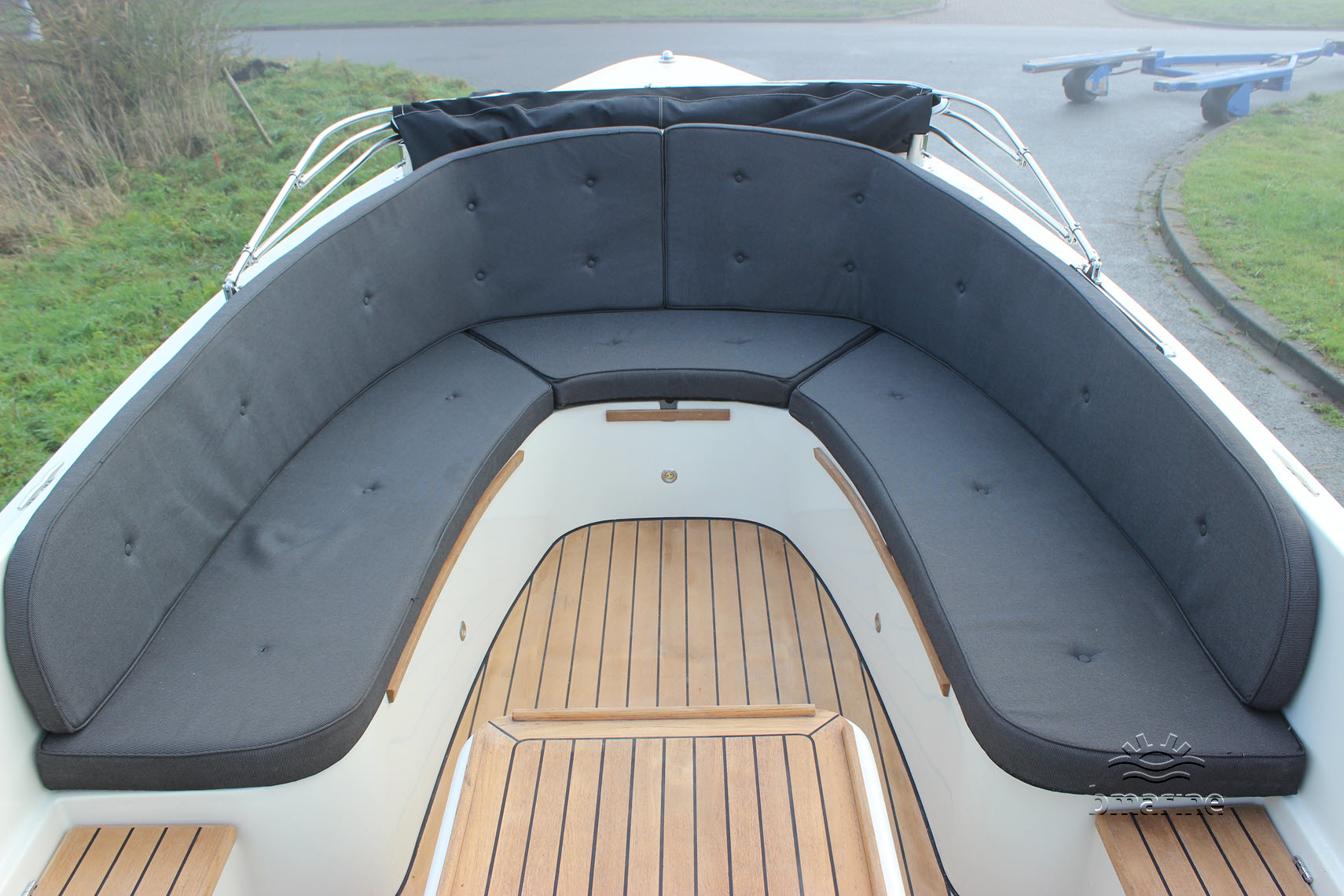 | Innenausstattung | : | Geräumiger Rundsitz vorn und achtern, Sonnenliege, Teakholz am Bodeneinstieg und Motorkasten, Edelstahlgriff am Steuerstand. |