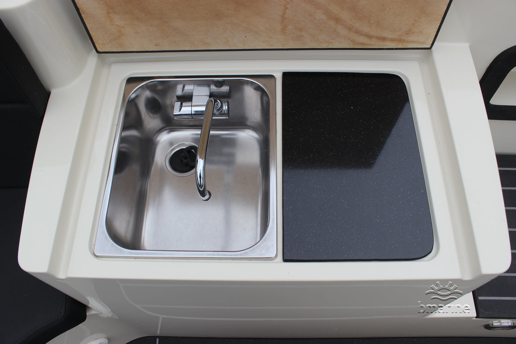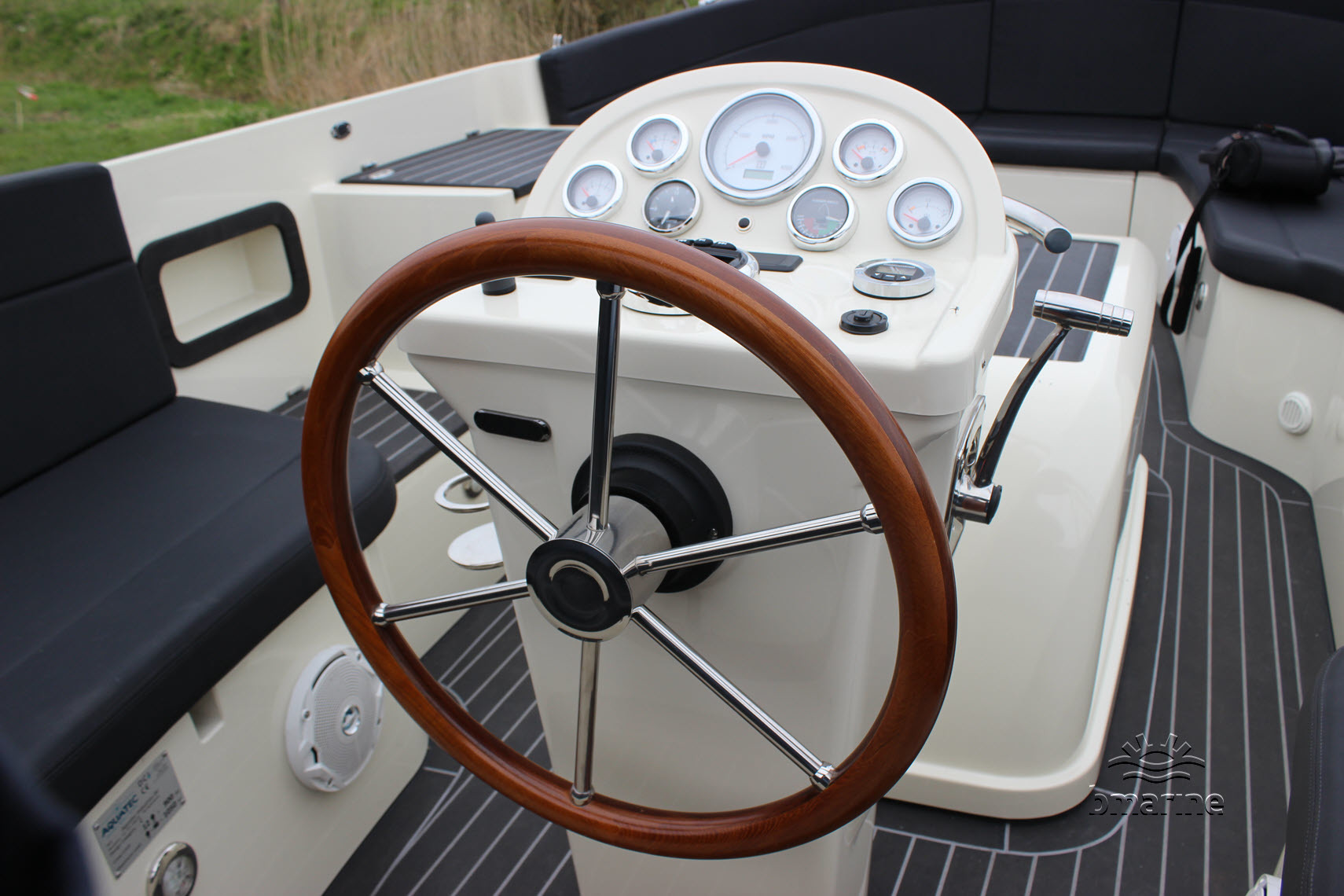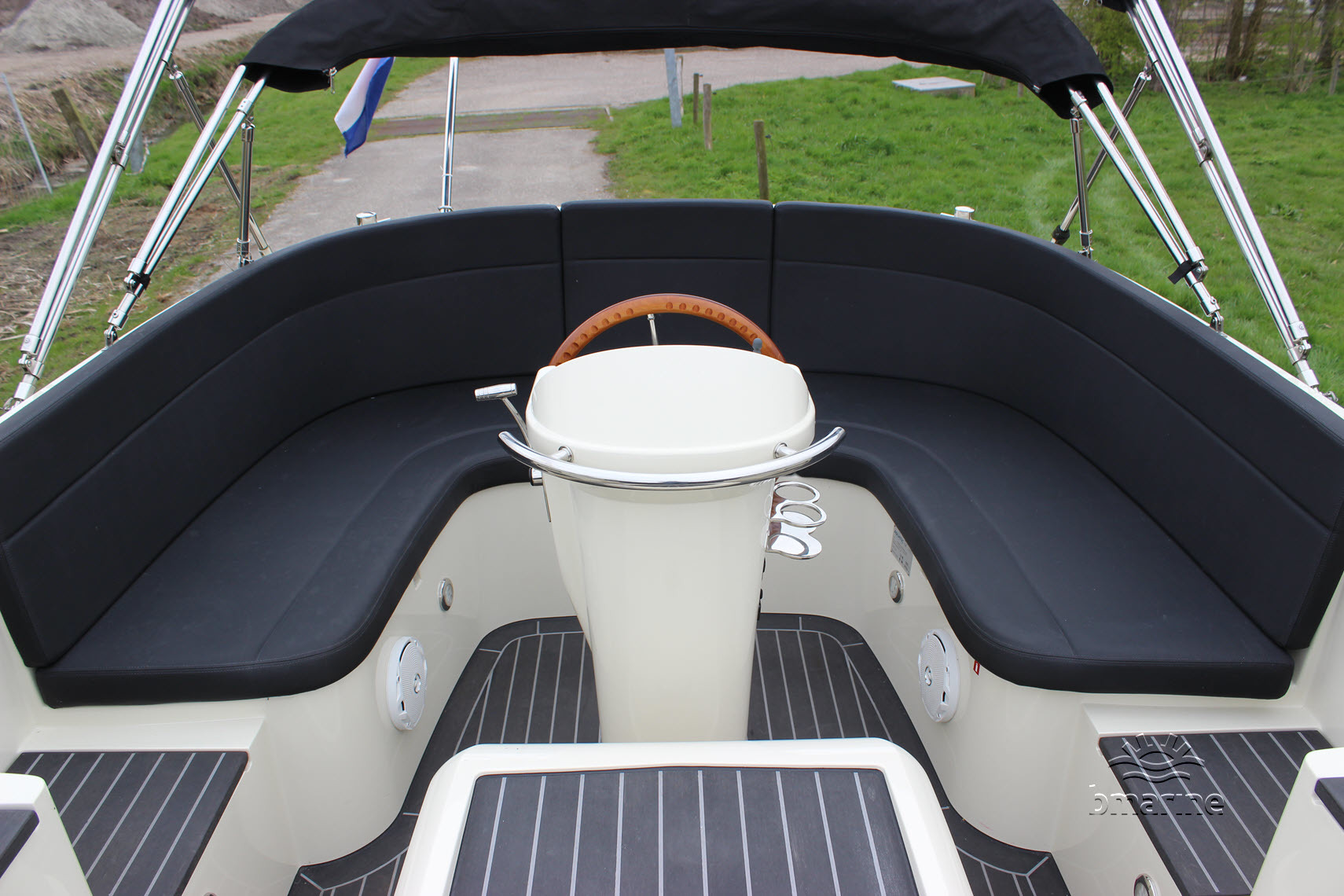| Innenausstattung | : | Geräumige Rundsitzplätze vorne und hinten, Cockpitbeleuchtung, künstliches Teakholz auf dem Boden, Einstieg, Schwalbennester, Motorkasten und Badeplattform. Spüle mit Durchflusswasser, Kühlschrank, chemische Toilette, Audiosystem DAB+ und Warmluftheizung. Reichlich Stauraum und Durchgang zur Badeplattform. |