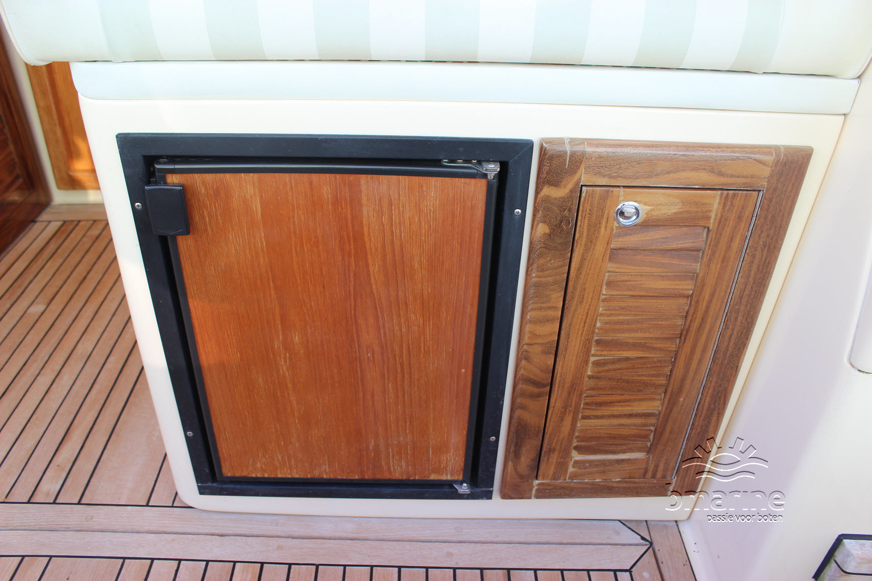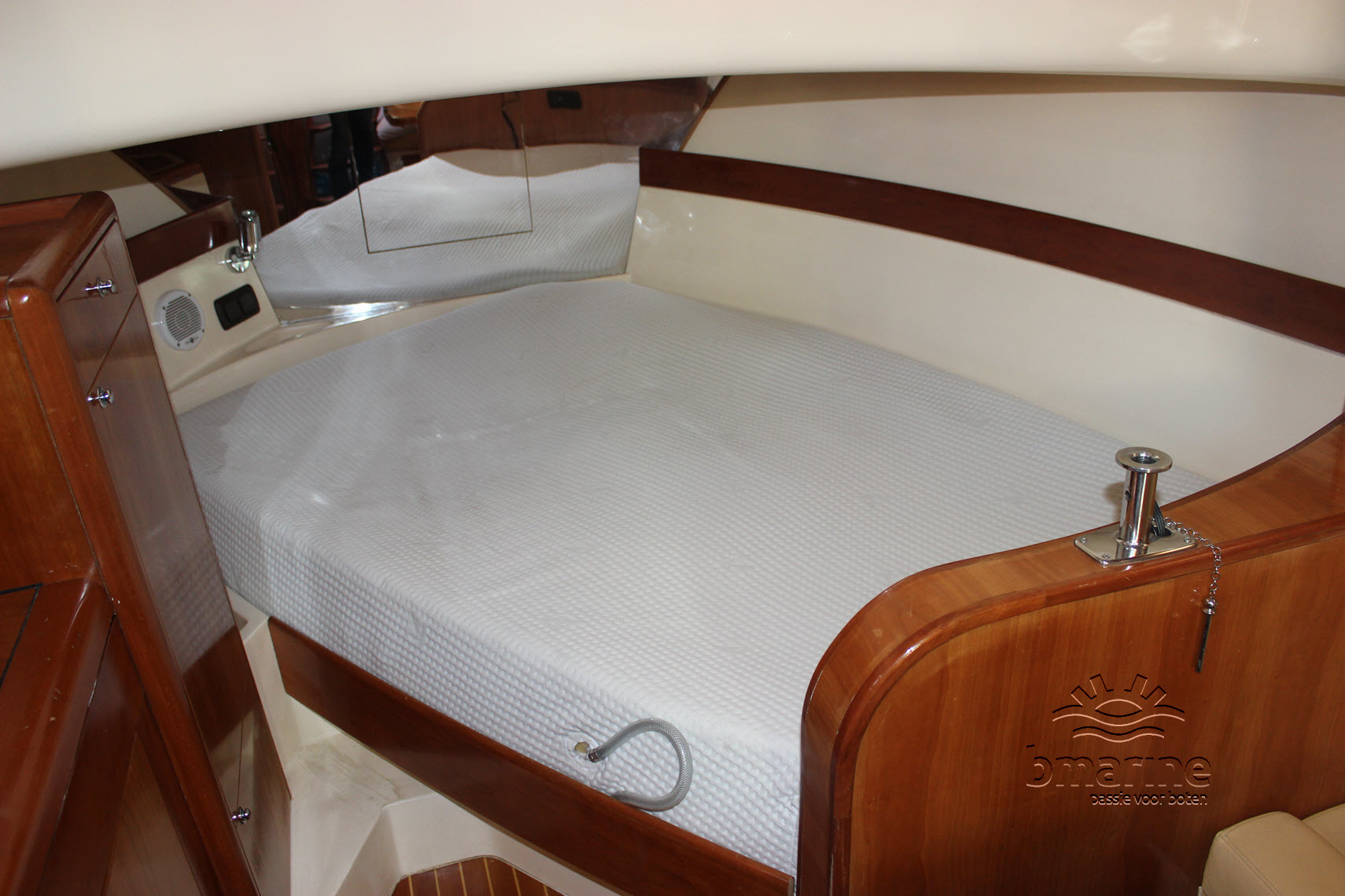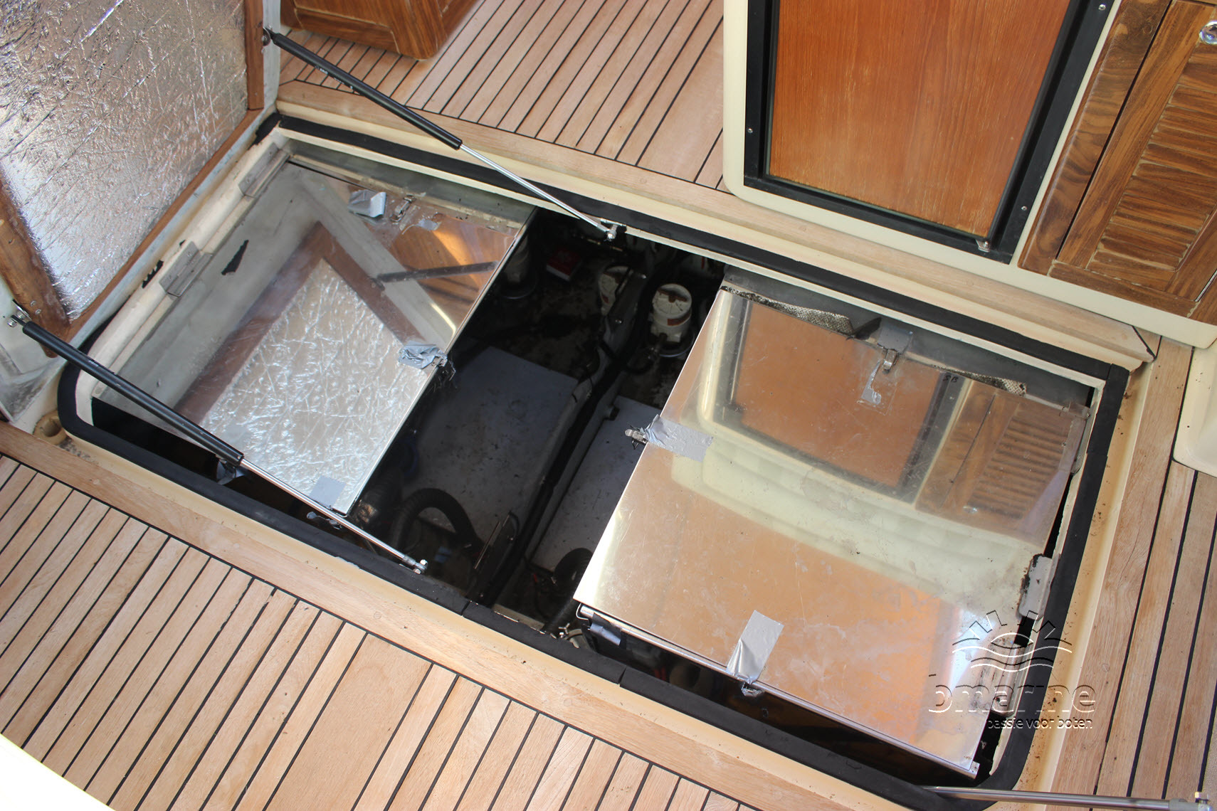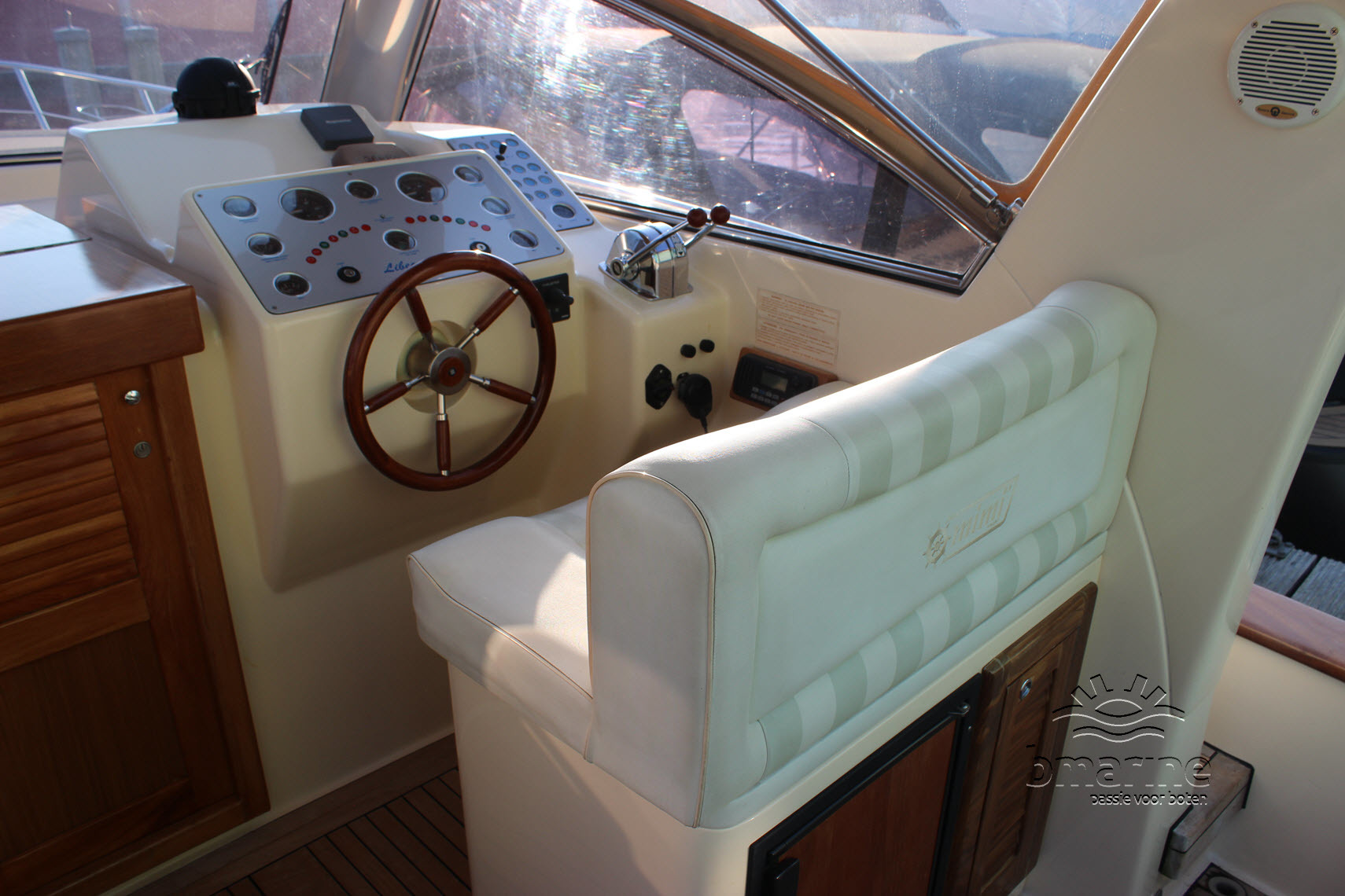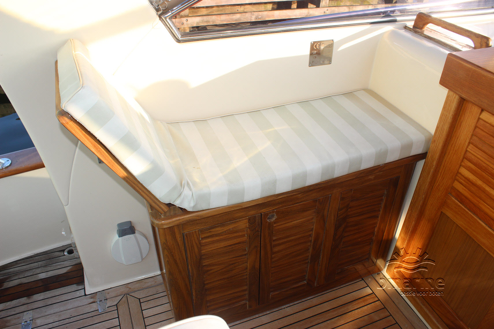 Accommodation | : | Ruime kuip voorzien van kuipverlichting en een rondzit (geherstoffeerd in 2020 ), bestuurders en meevaarders bank met daarin een extra koelkast. Ruime kajuit voorzien van kersenhout interieur, een afgesloten toilet (elektrische) met spoelbak en handddouche en een uitgang van de verwarming. Spoelbak met stromend water, koelkast en een 2 pits kooktoestel op gas. Daarnaast is er voor in de punt een vast 2 persoonsbed voorzien van luchtgeveerd instelbaar matras. De rondzit in de kajuit kan eenvoudig worden omgebouwd tot extra slaapplaats voor 2 personen. zowel de kuip als kajuit kan verwarmd worden doormiddel van een Webasto hetelucht verwarming en gekoeld door een Climma airco. Audiosysteem zowel buiten als binnen en apart bedienbaar. |