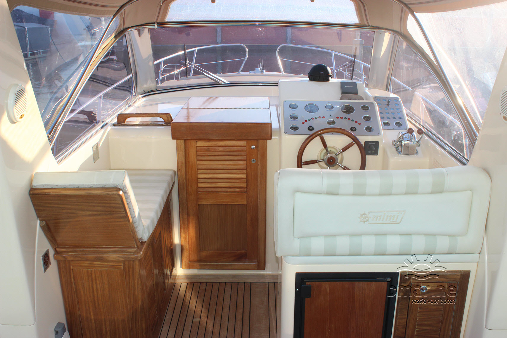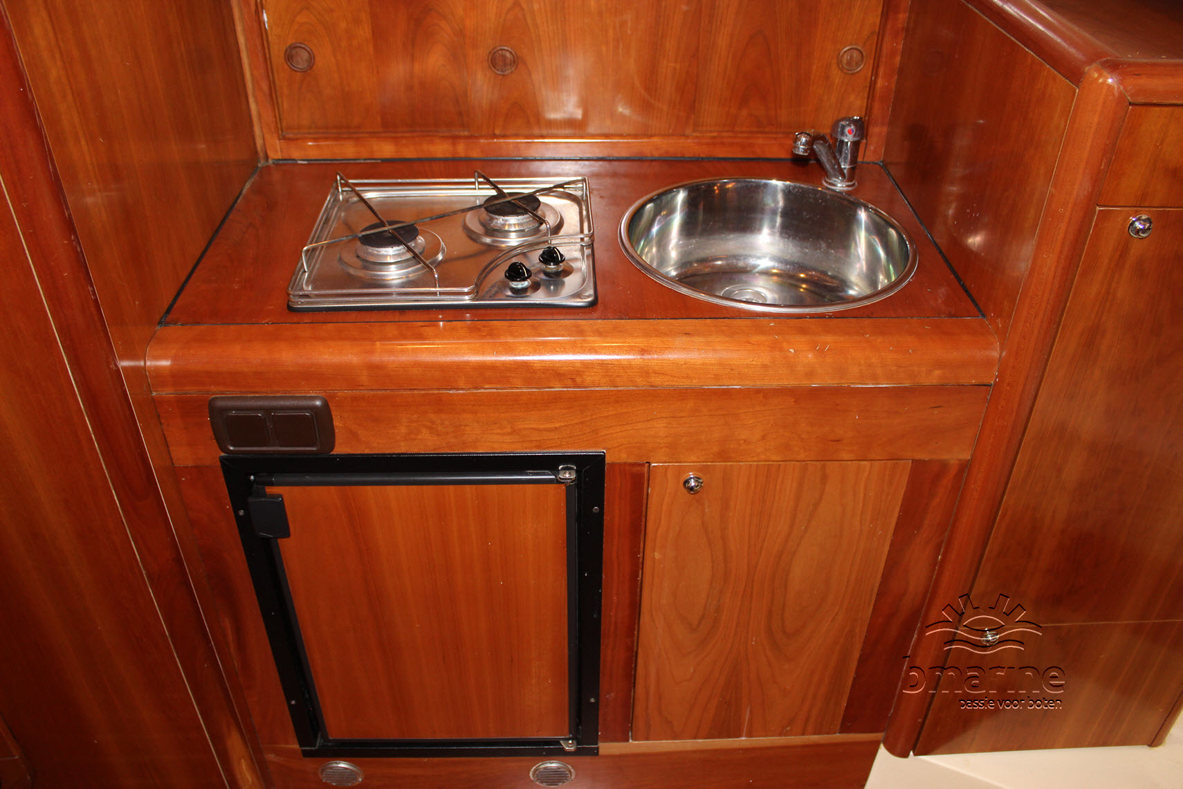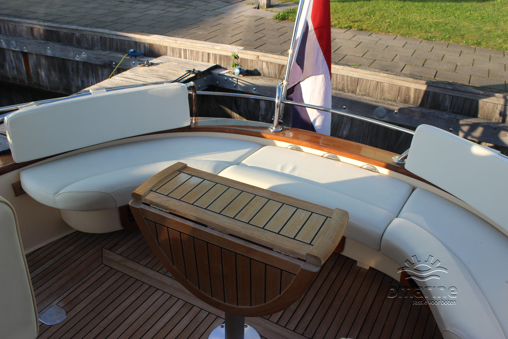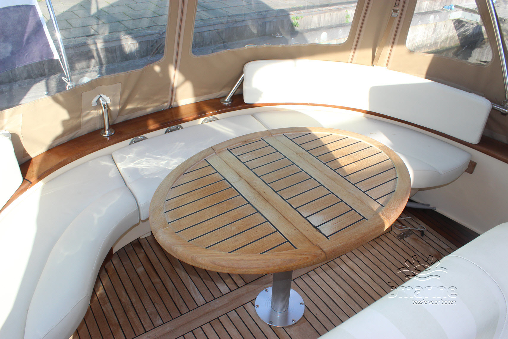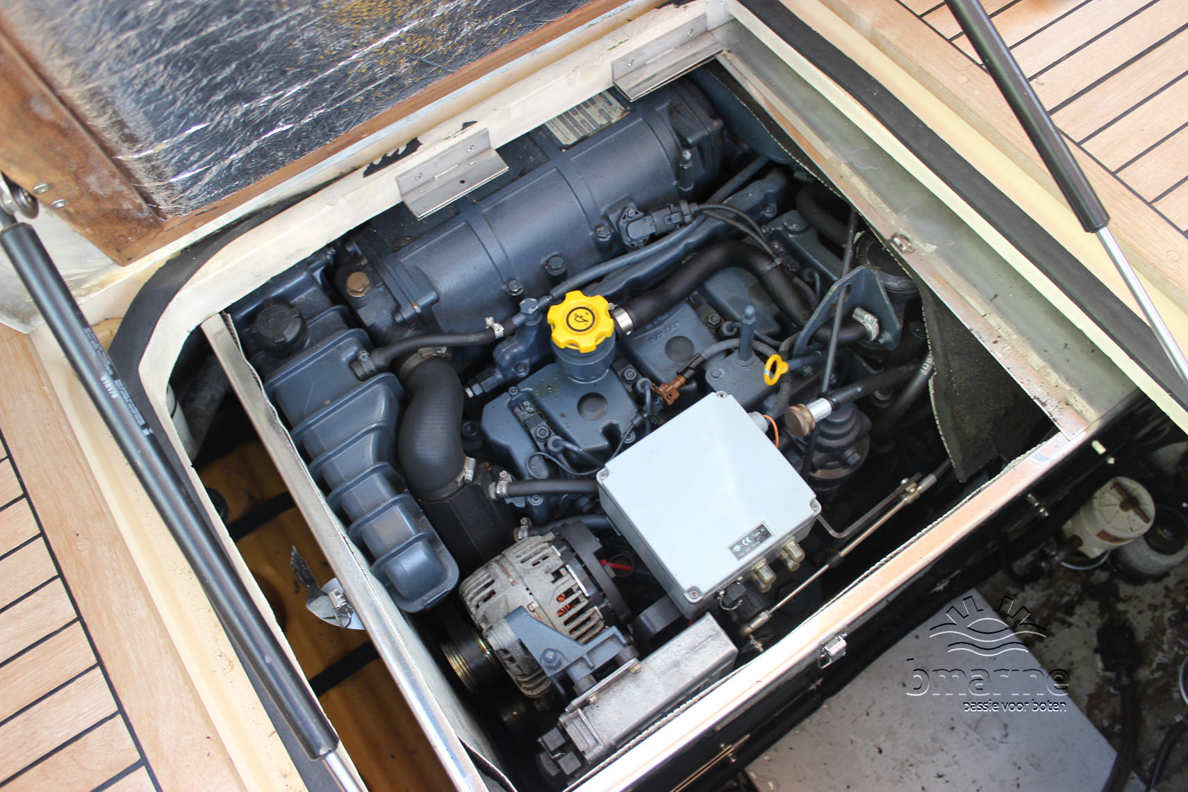 Accommodation | : | Ruime kuip voorzien van kuipverlichting en een rondzit (geherstoffeerd in 2020 ), bestuurders en meevaarders bank met daarin een extra koelkast. Ruime kajuit voorzien van kersenhout interieur, een afgesloten toilet (elektrische) met spoelbak en handddouche en een uitgang van de verwarming. Spoelbak met stromend water, koelkast en een 2 pits kooktoestel op gas. Daarnaast is er voor in de punt een vast 2 persoonsbed voorzien van luchtgeveerd instelbaar matras. De rondzit in de kajuit kan eenvoudig worden omgebouwd tot extra slaapplaats voor 2 personen. zowel de kuip als kajuit kan verwarmd worden doormiddel van een Webasto hetelucht verwarming en gekoeld door een Climma airco. Audiosysteem zowel buiten als binnen en apart bedienbaar. |