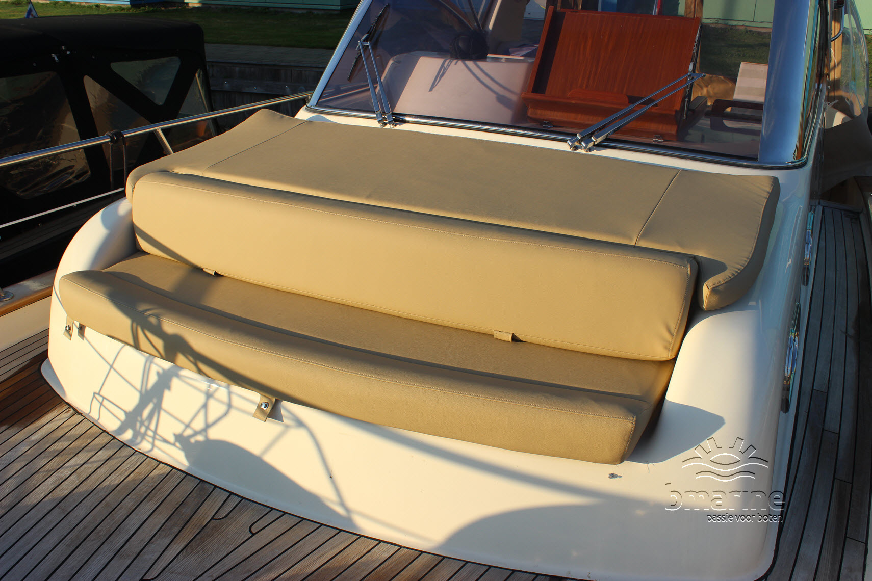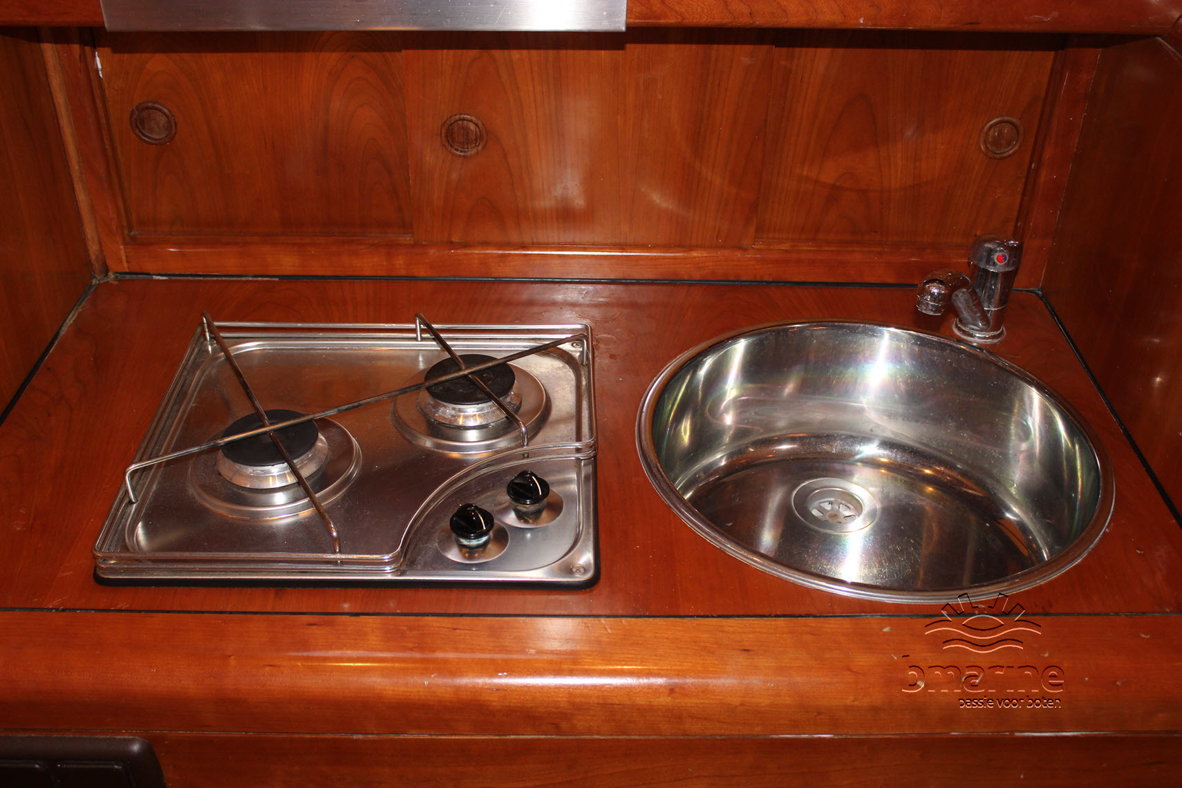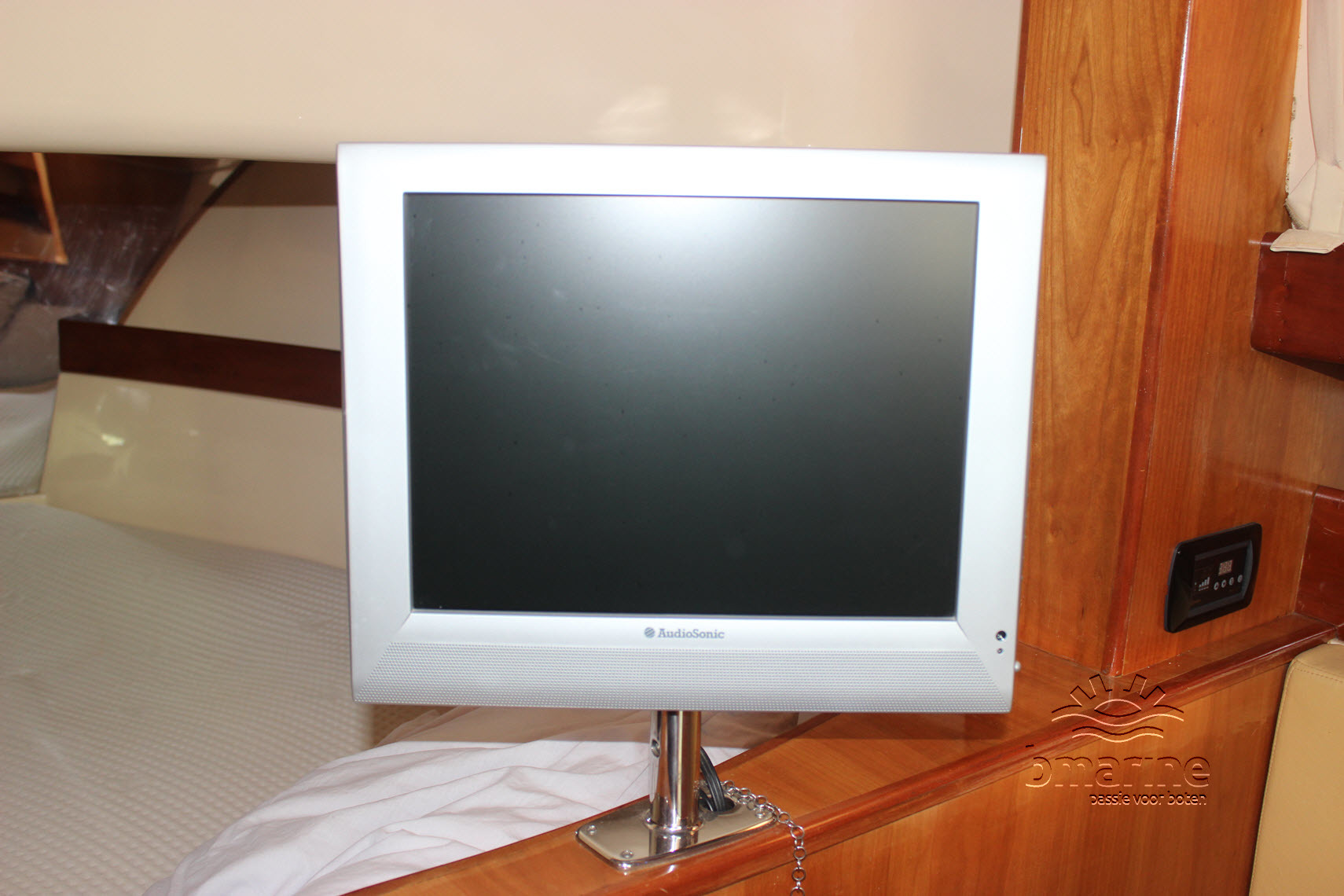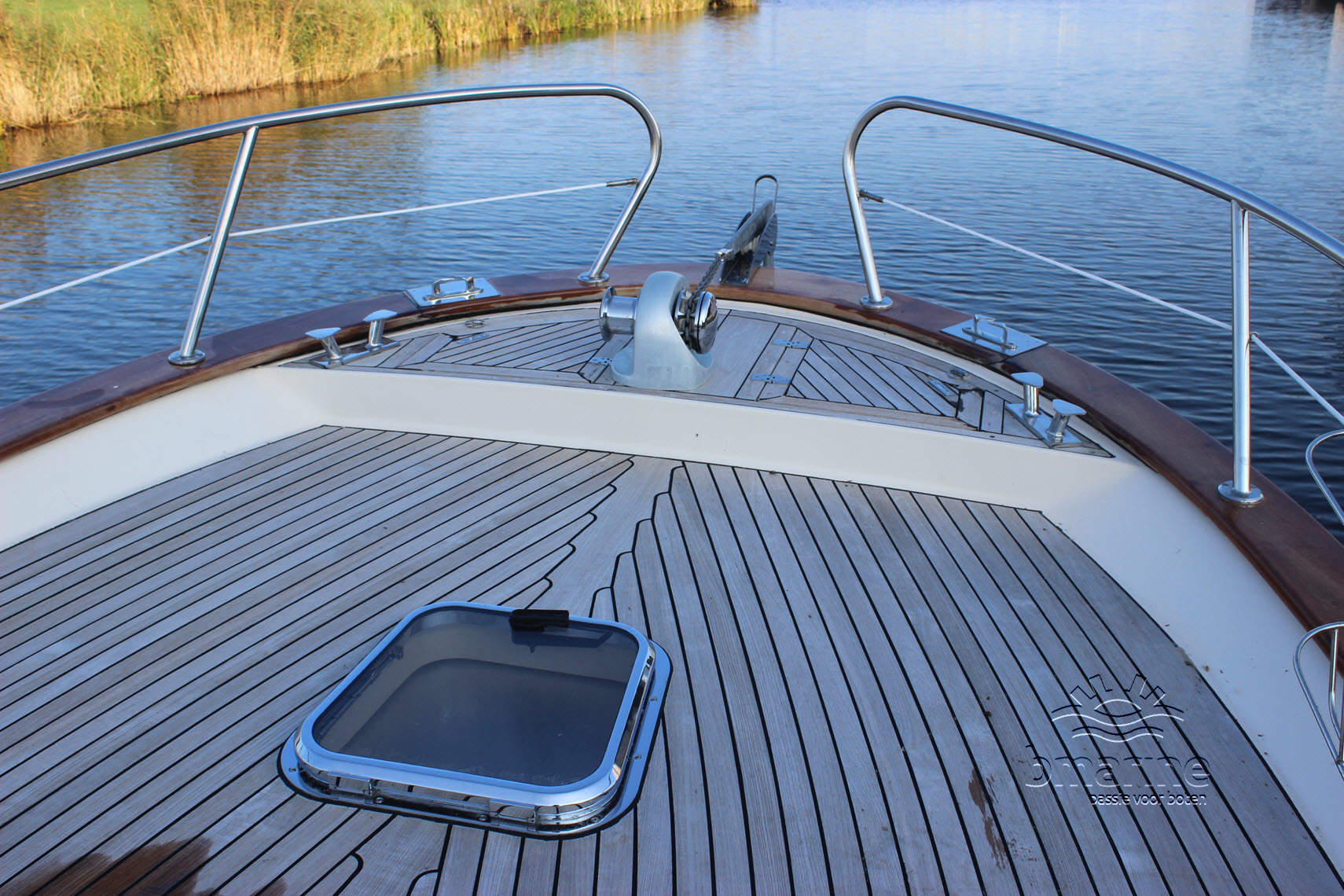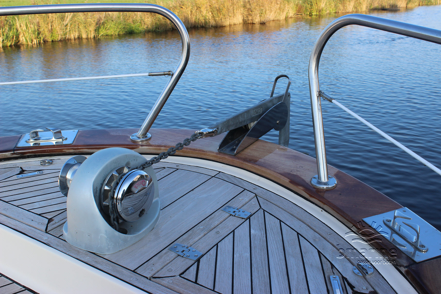 Accommodation | : | Ruime kuip voorzien van kuipverlichting en een rondzit (geherstoffeerd in 2020 ), bestuurders en meevaarders bank met daarin een extra koelkast. Ruime kajuit voorzien van kersenhout interieur, een afgesloten toilet (elektrische) met spoelbak en handddouche en een uitgang van de verwarming. Spoelbak met stromend water, koelkast en een 2 pits kooktoestel op gas. Daarnaast is er voor in de punt een vast 2 persoonsbed voorzien van luchtgeveerd instelbaar matras. De rondzit in de kajuit kan eenvoudig worden omgebouwd tot extra slaapplaats voor 2 personen. zowel de kuip als kajuit kan verwarmd worden doormiddel van een Webasto hetelucht verwarming en gekoeld door een Climma airco. Audiosysteem zowel buiten als binnen en apart bedienbaar. |