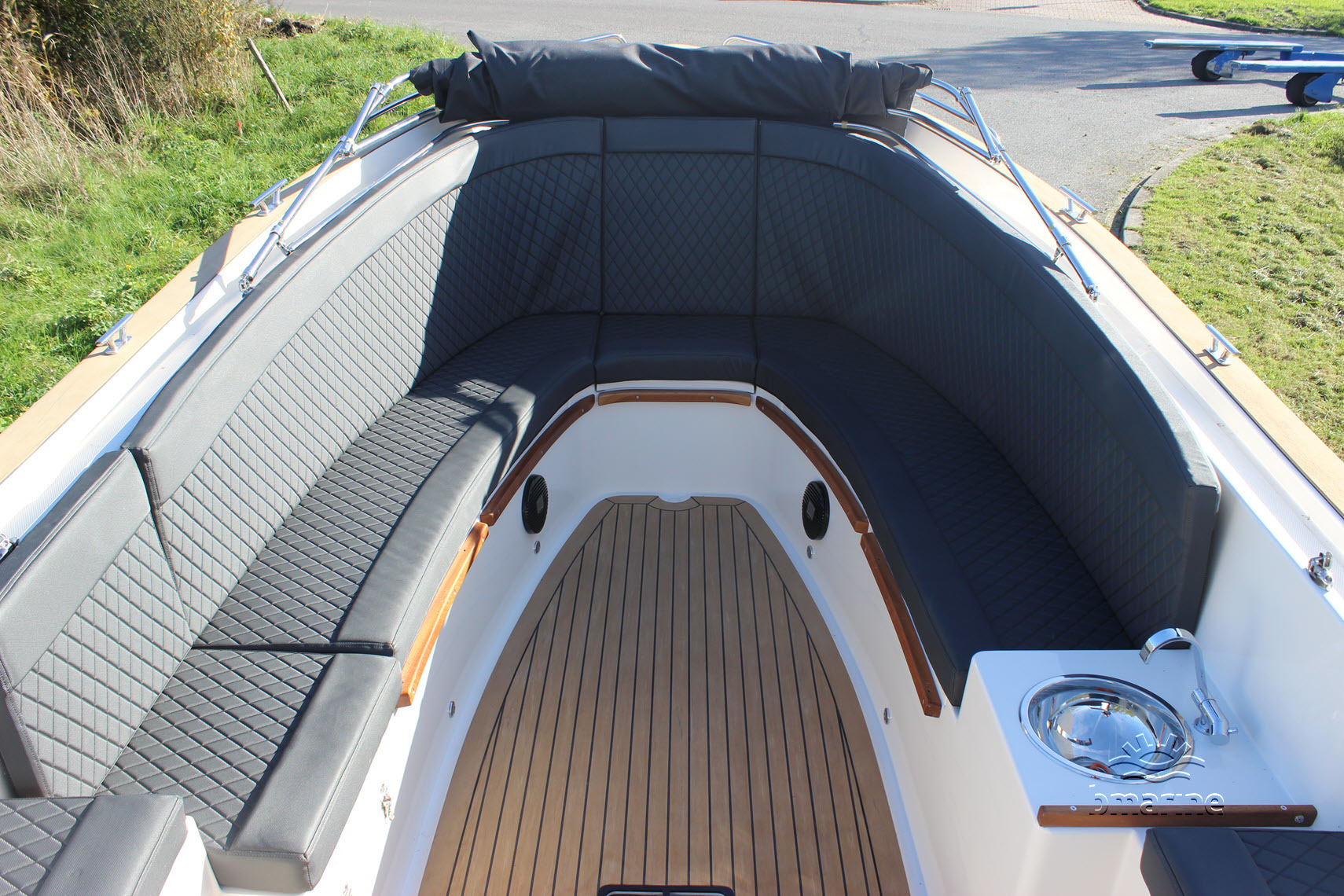 | Interior | : | Spacious round seat both fore and aft, flexi deck on floor and engine box, sink with flow water, audio system, sun bed and electric toilet. |