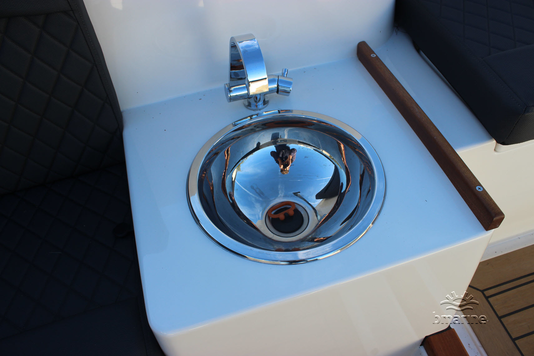 | Deck equipment | : | Spray hood with sloping tarpaulin, pubic cover and bimini top. Swim platform with swim ladder. |
