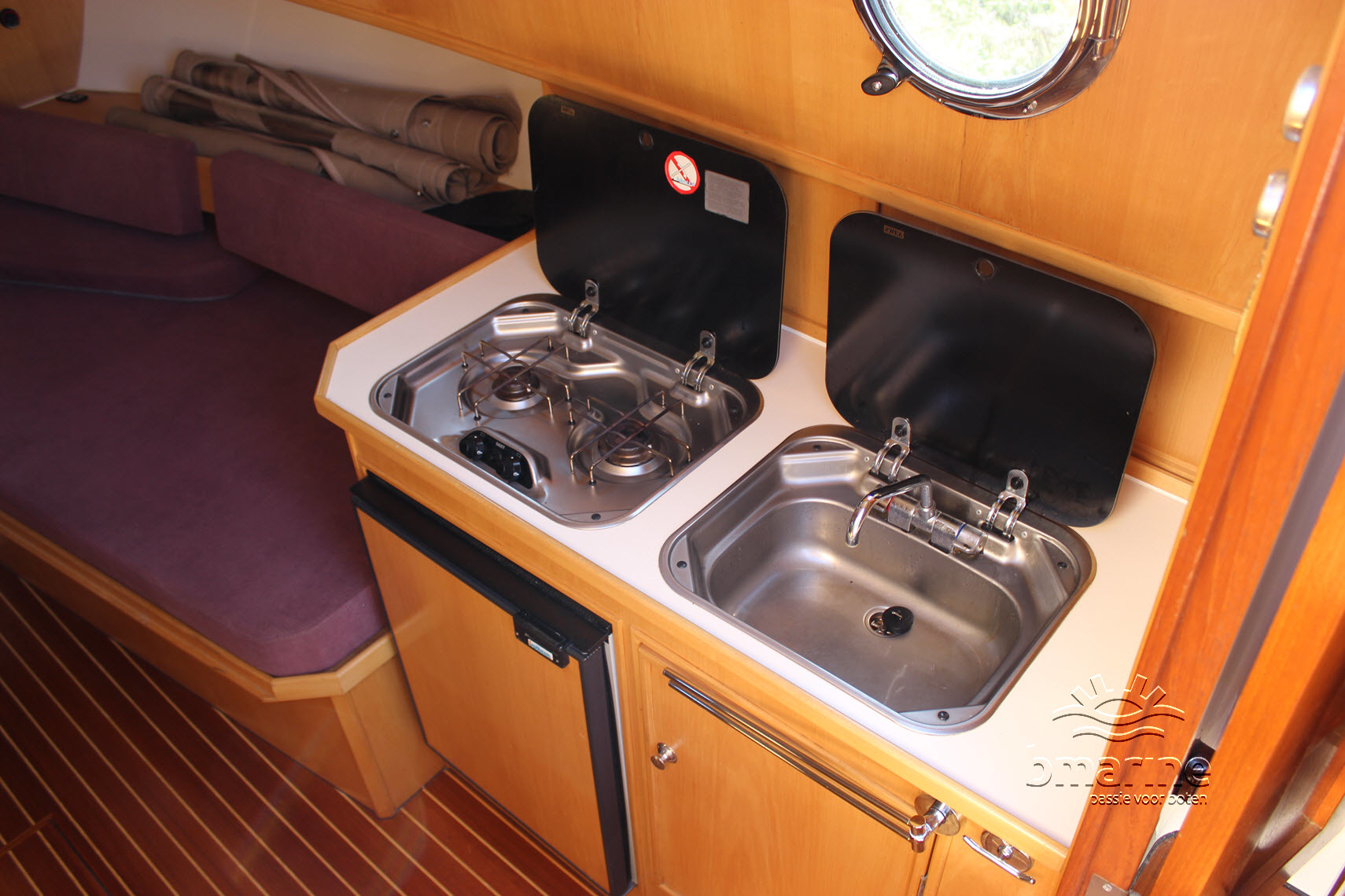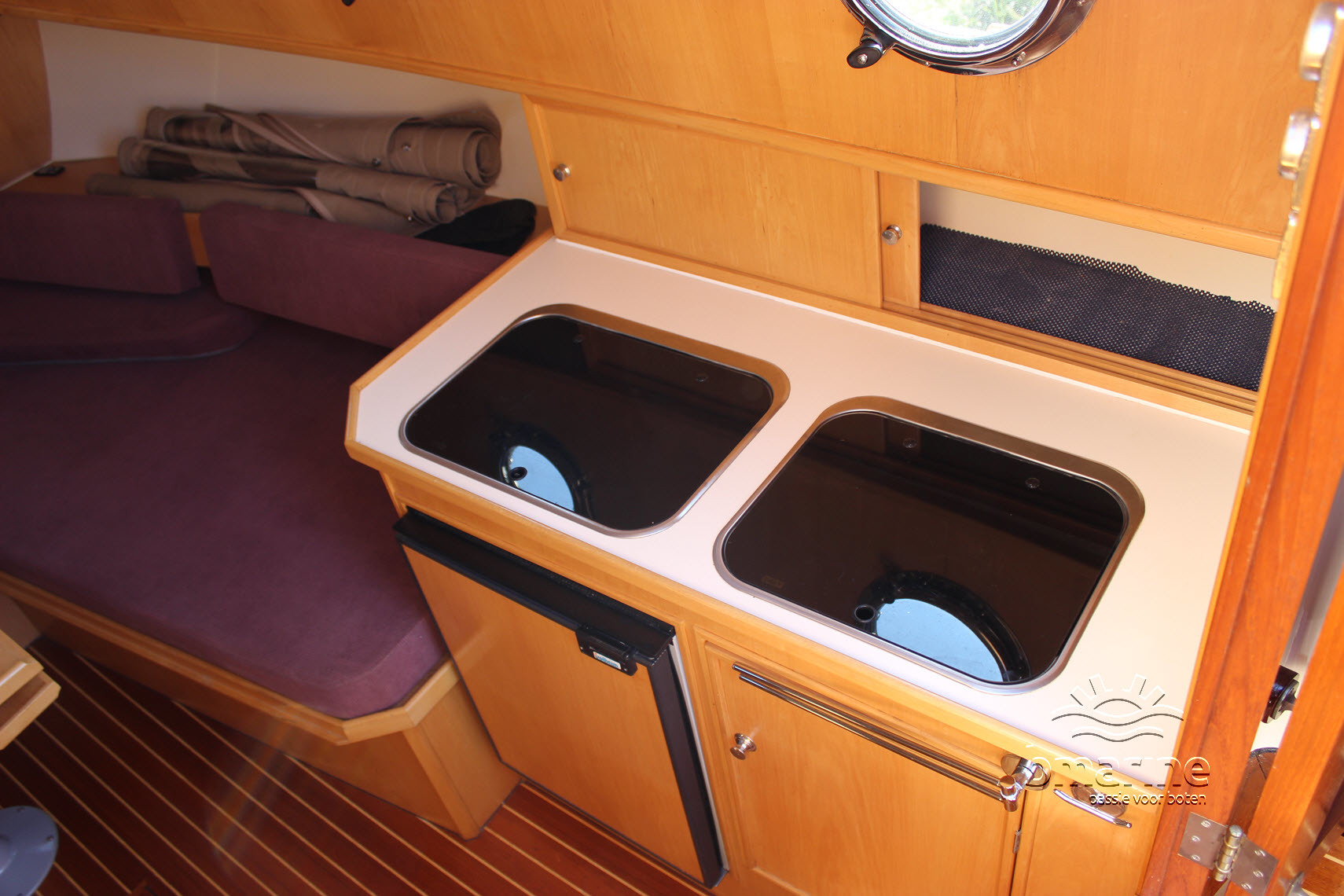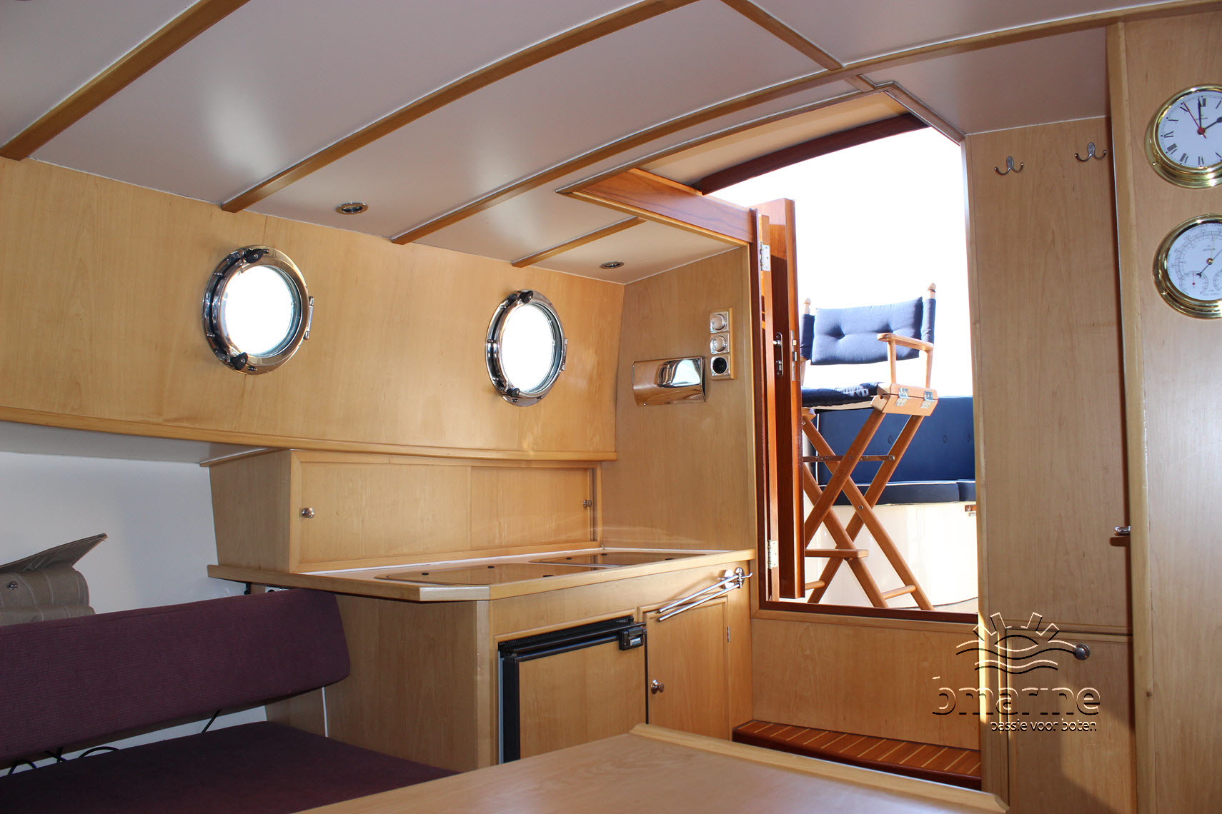Accommodation | : | De salon is door de breedte van het schip zeer ruim en voorzien van o.a. een afgesloten toiletruimte voorzien van elektrische toilet en handdouche. Keukenblok met 2 pits kooktoestel op gas, spoelbak met stromend water (warm/koud) en koelkast. De rondzit is om te bouwen tot slaapplaats voor 2 personen. |