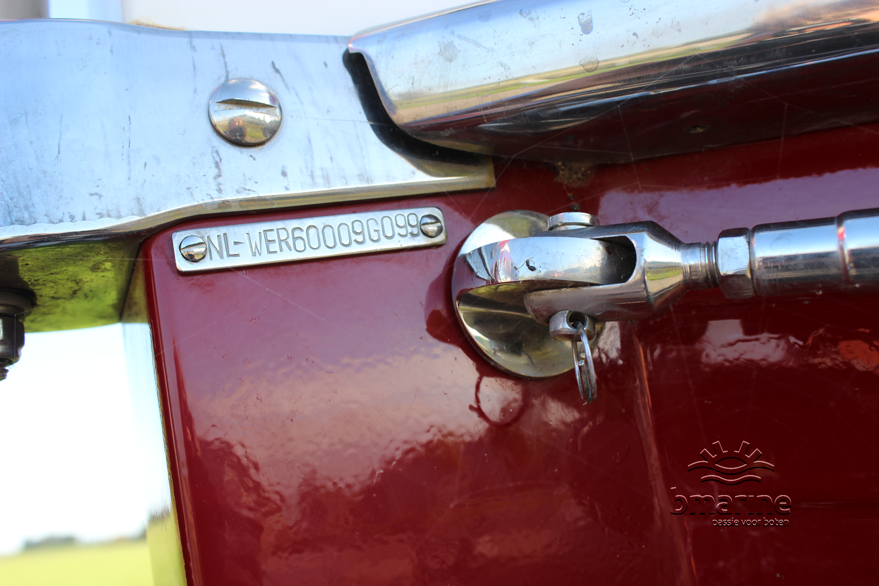 Accommodation | : | Teakhout op de vloer, motorkist en fenderlijst. De cabin is voorzien van een keukenblok met 2 pits kookstoestel, spoelbak met stromend water en koelkast. Daarnaast is er een afgesloten toilet en ruime rondzit met mogelijkheid tot 2 persoonsbed. |