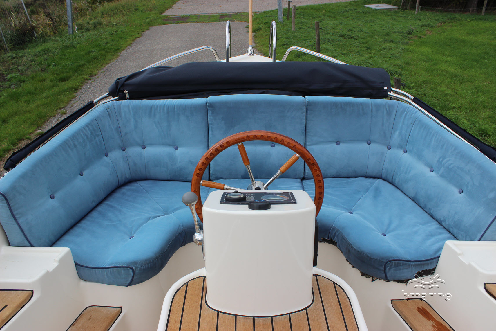 Deck equipment | : | Tube cover with raised aft tent (2025), cable fender (2023), stainless steel railing fore and aft, swim ladder at transom. |