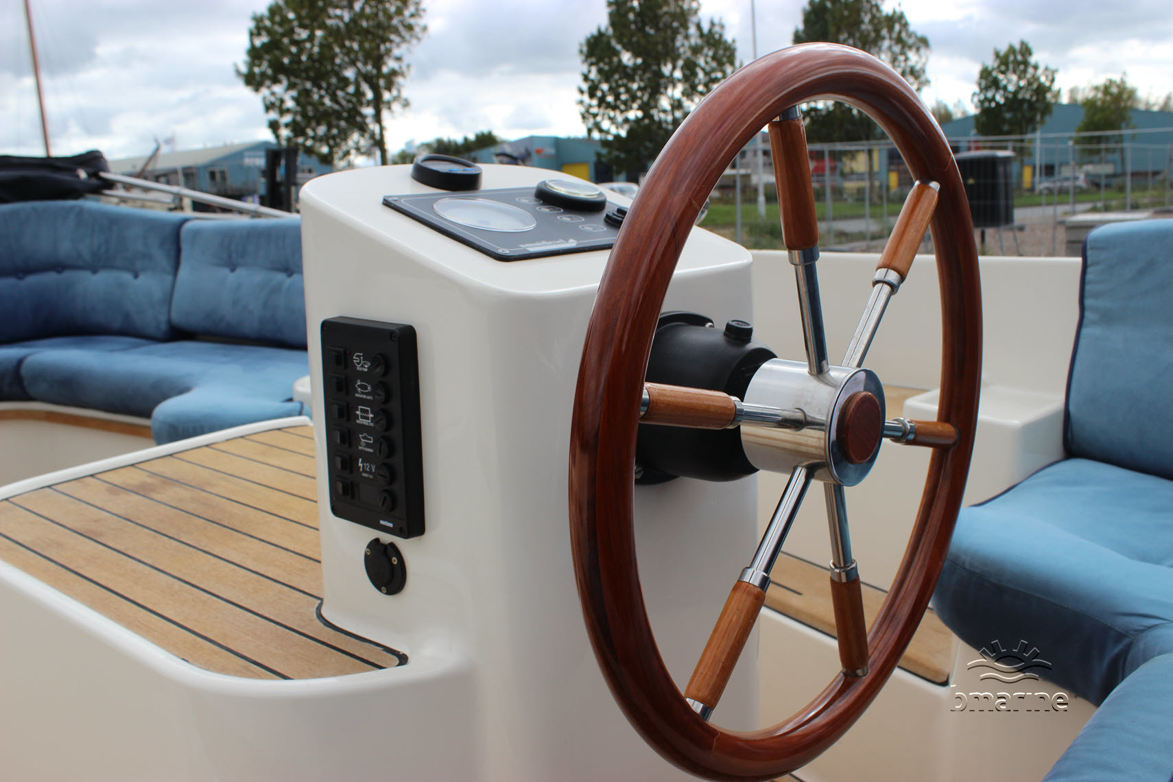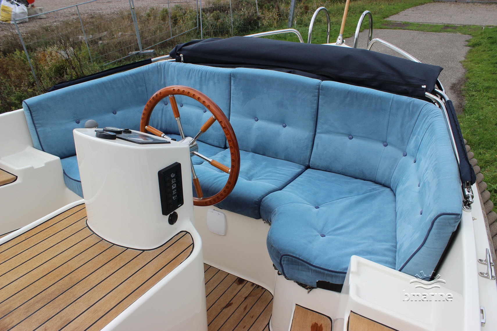 Accommodation | : | Ruime rondzit zowel voor als achter, teak op de vloer, instap en motorkist. Zonnebed, spoelbak met stromend water, 1 pits kooktoestel op gas, koelkast en chemisch toilet. |